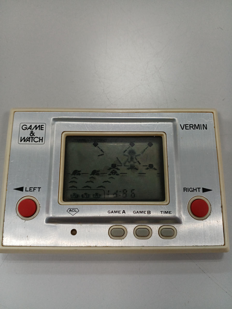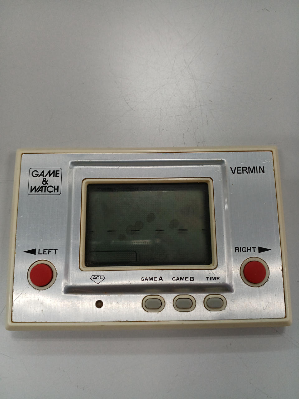 ゲームウォッチ「VERMIN」、画面に黒ずみあり、本体のキズ多めです |