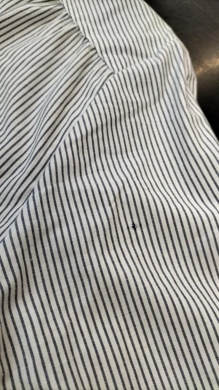 使用感あり。左袖に引っ掛けたような跡があります。 |