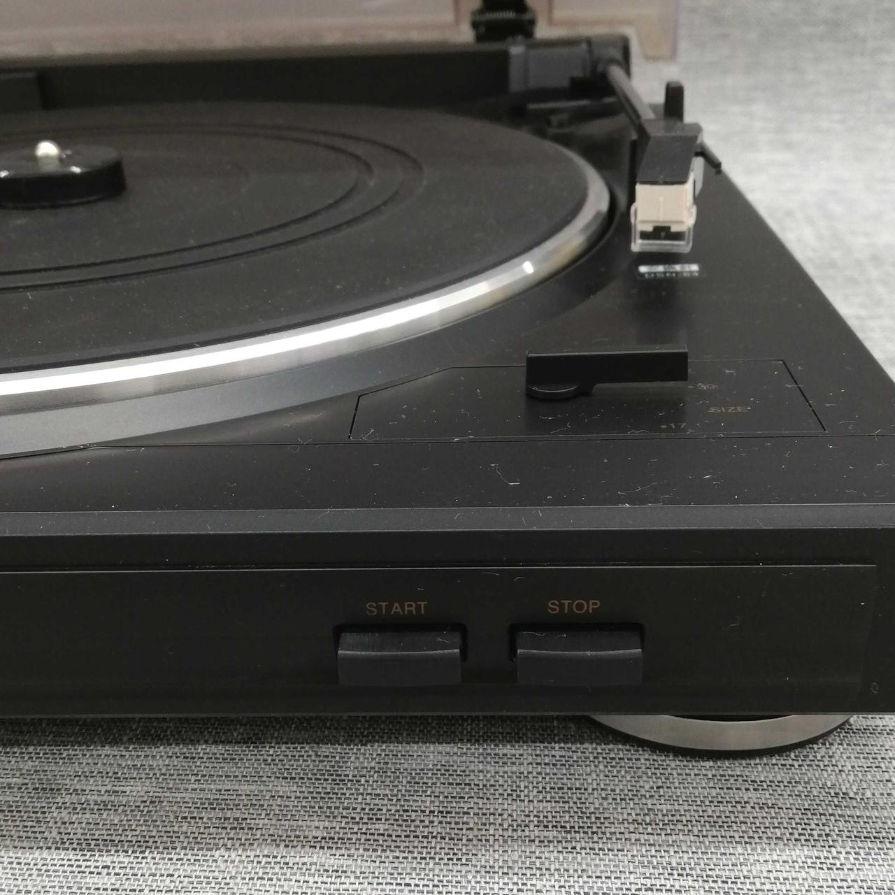 30cm/17cmのレコードサイズを選択すれば、簡単操作で自動的にアームが移動、再生終了後アームが戻ります |