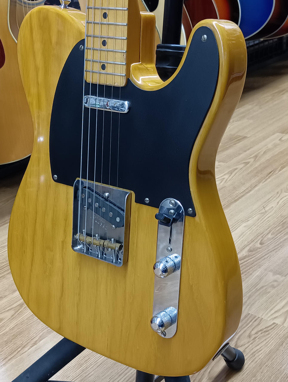 ■絶大な人気を誇るフジゲン製 Aシリアル期のTL52-701 ■人気のバタースコッチブロンドにマイナスネジを使った1プライのブラックピックガードが特徴。 ■演奏性の高さだけでなく、ビジュアルも目を引く木目のまさに逸品といえるモデル。 |