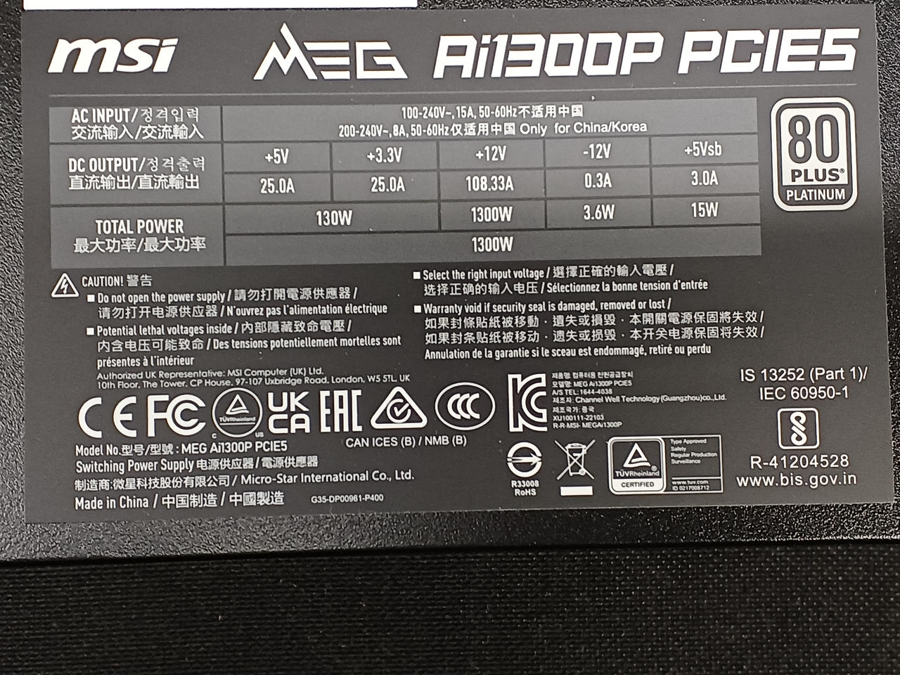 電源容量1300w |