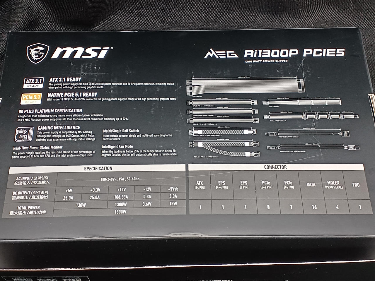 PCIe 6+2ピンx8 SATA16 個 ペリフェラル 4 個 FDD 1個 |