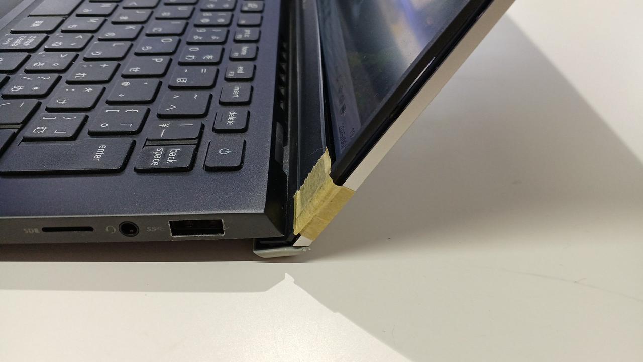 画面ヤケ、ホワイトスポット、ヒンジ部分の割れにつきジャンク |