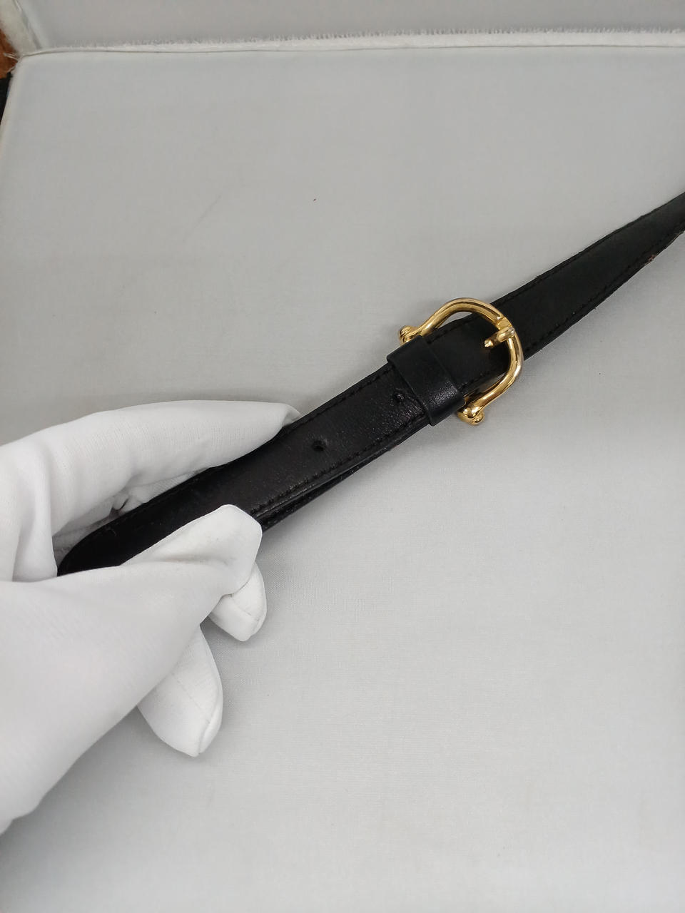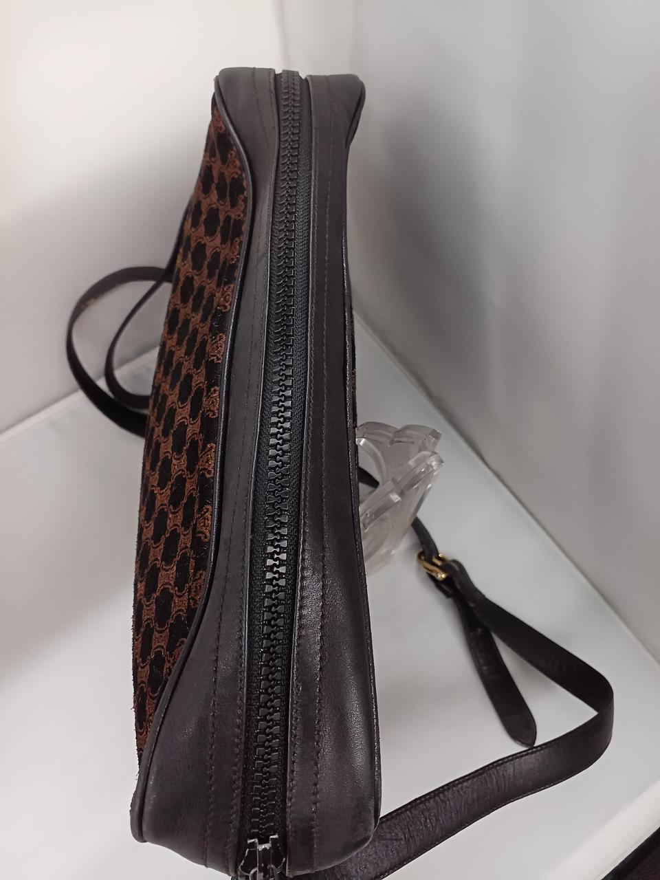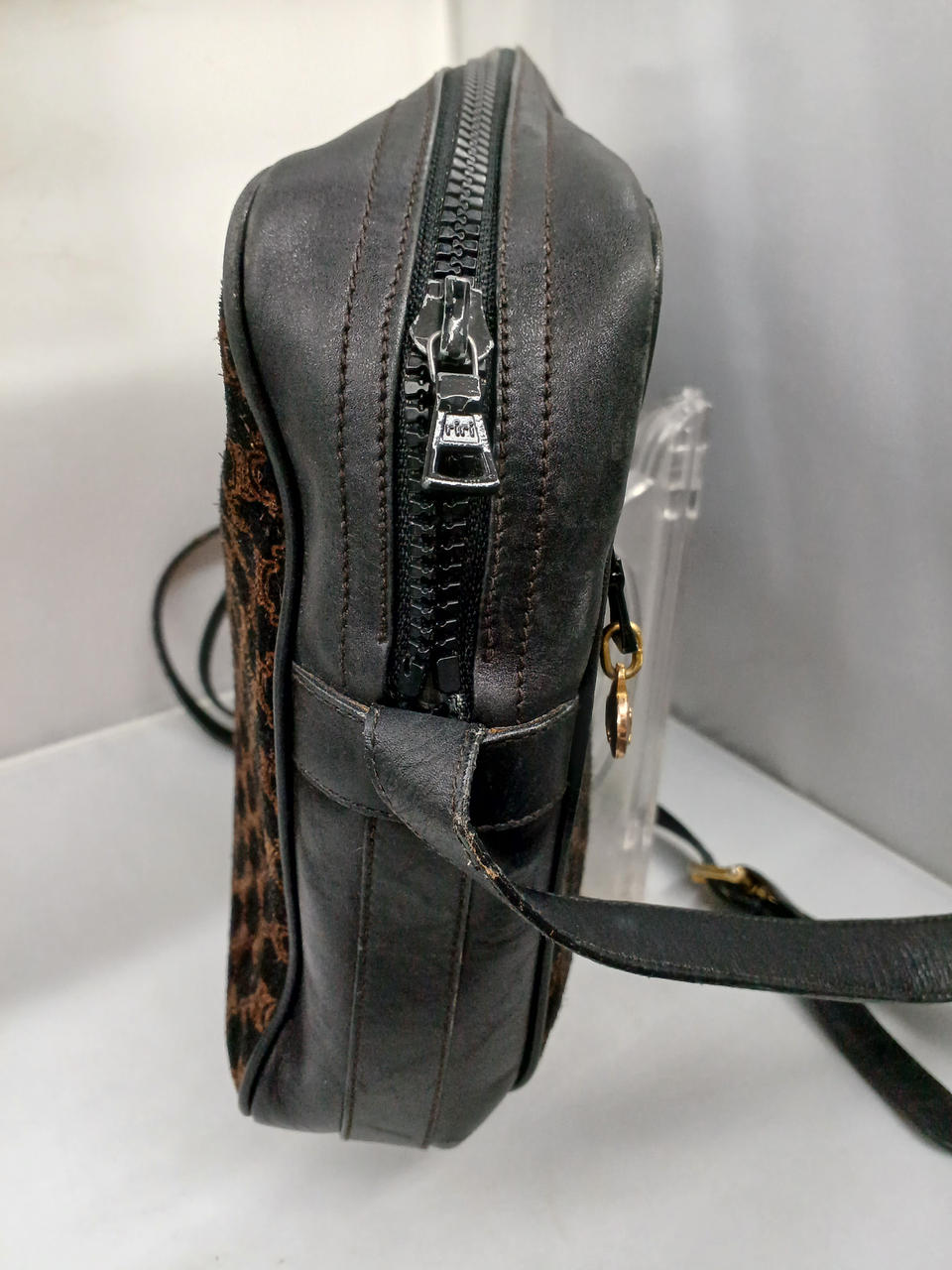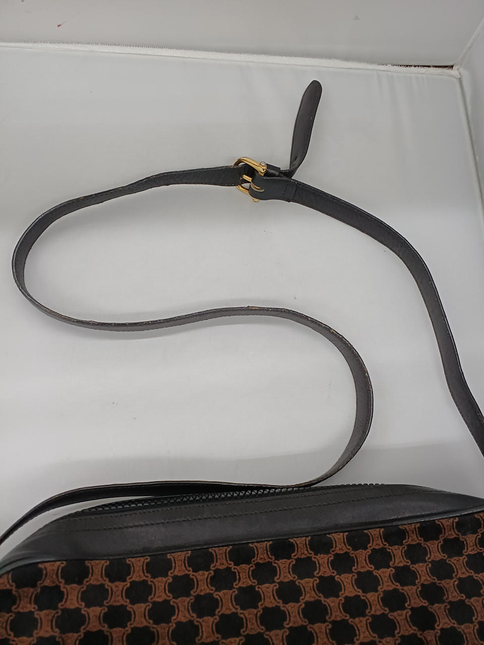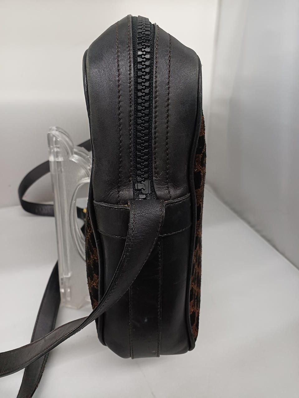 ガラスケースにて販売しております。全体的に使用感あるお品物になります。ショルダーベルト部分に剥がれや劣化、金具にメッキ剥がれ、内側も状態悪めです。