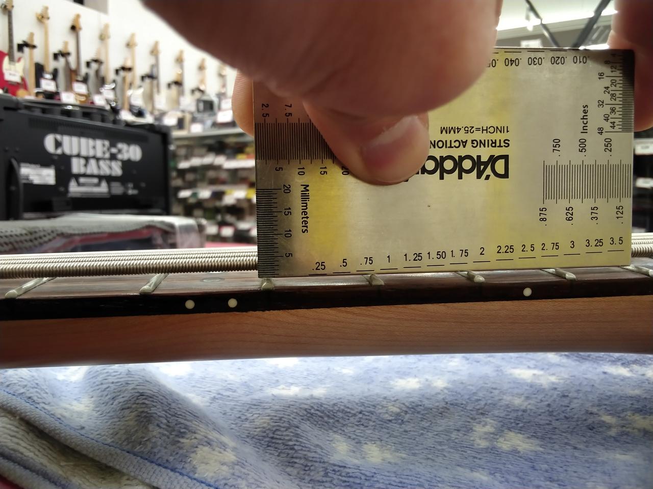 ※商品画像は、レギュラーチューニングの状態で撮影しています。トラスロッドもレギュラーチューニングの状態を基準に調整してあります。また、全てのポジションで演奏確認を行い、音詰まりによる音消えがないことを基準にセッティングしています。(低めの弦高のセッティングの為、『ネック寄りで強めにピック弾き』等、弦の振幅幅が大きい弾き方をされる際は、バズが出る可能性があります。この場合は、弦高を上げて調整くださいませ) 弦高の数値は、気候・ネックコンディション・チューニング・弦のゲージ等の要因で上下しますので、あくまでの参考値となります。また塗装・木工・研磨切削等、不可逆的なカスタムで品物へ手を加えられる場合は、保証対象外となる場合がございます。 |