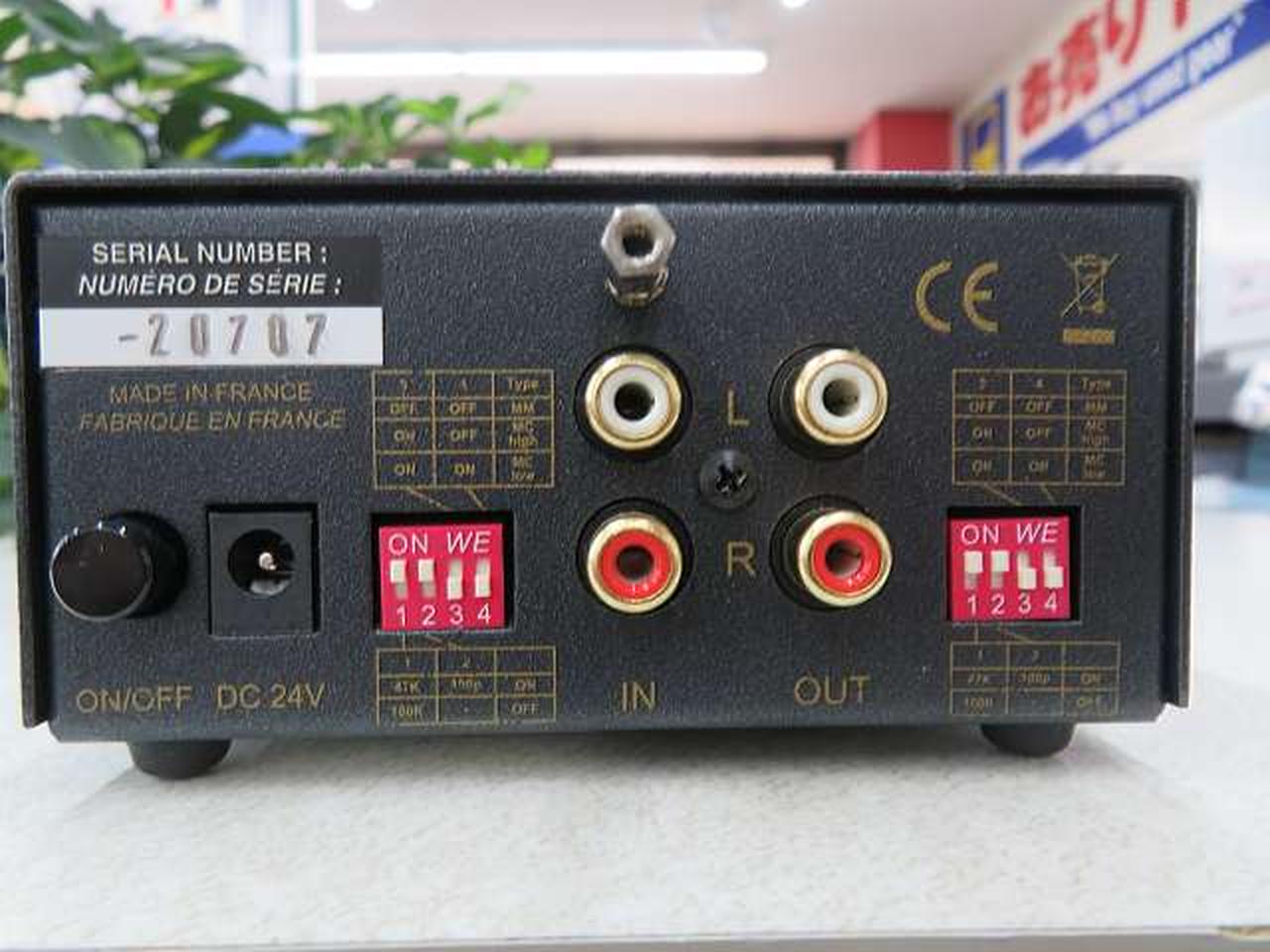 入力インピーダンス:47kΩ/100kΩ 入力容量:100pF/0 ゲイン:40dB(MM)、46dB(MC/High)、52dB(MC/Low) |
