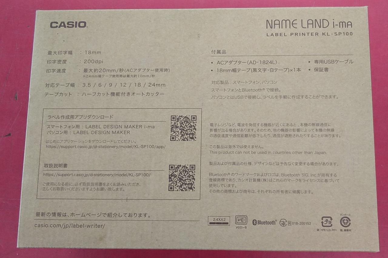 箱・説明書・ACアダプター・USBケーブル・テスト用テープ |