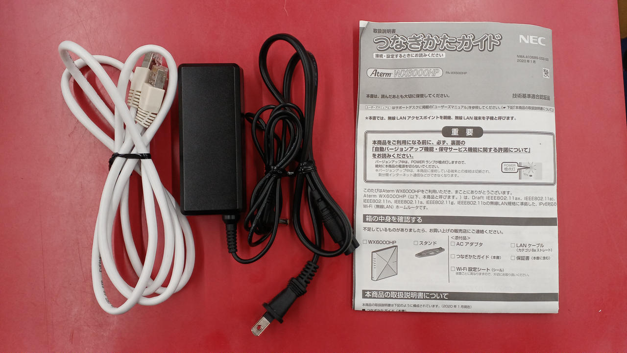 電源アダプタ、LANケーブル、取扱説明書 |