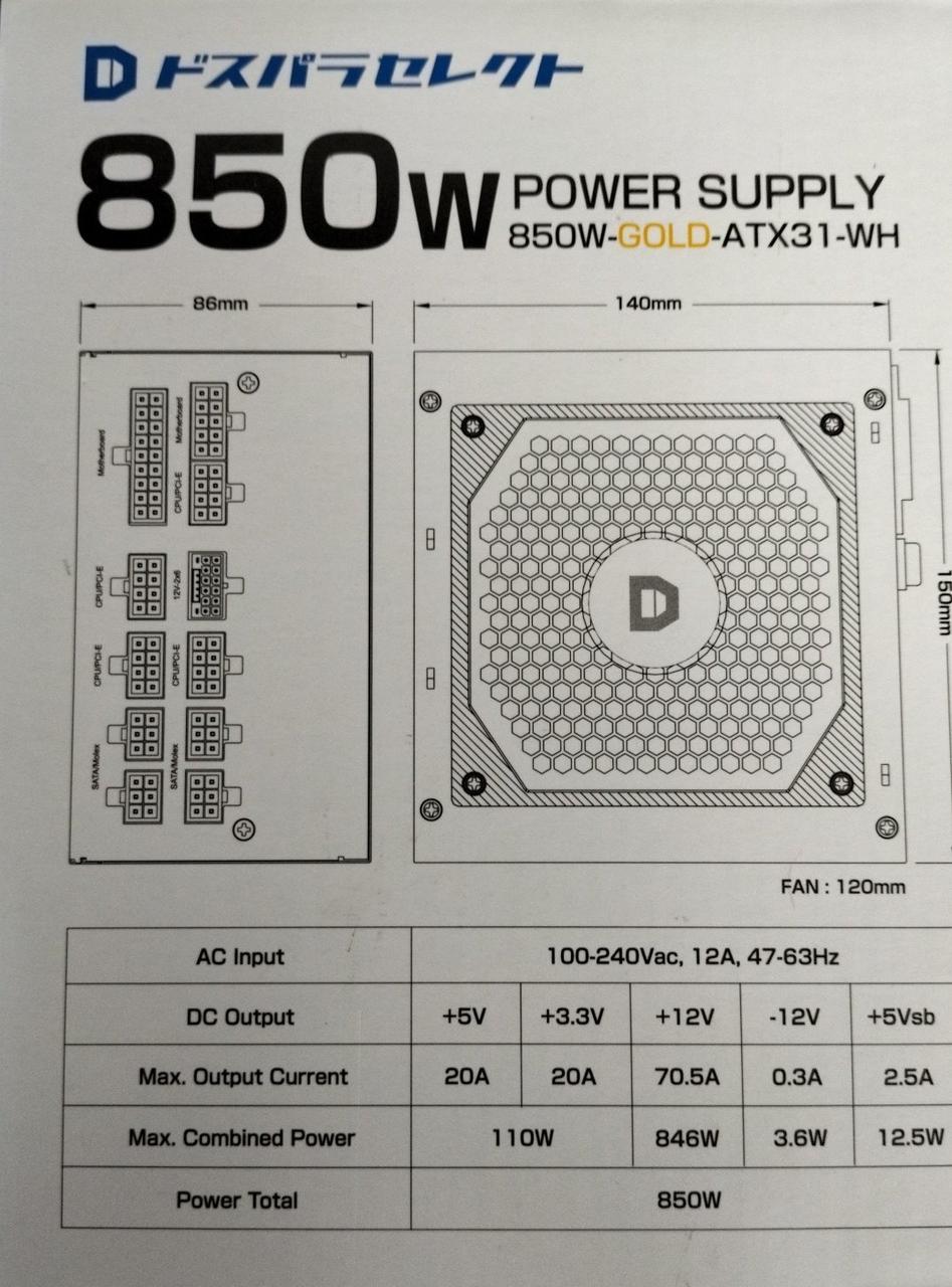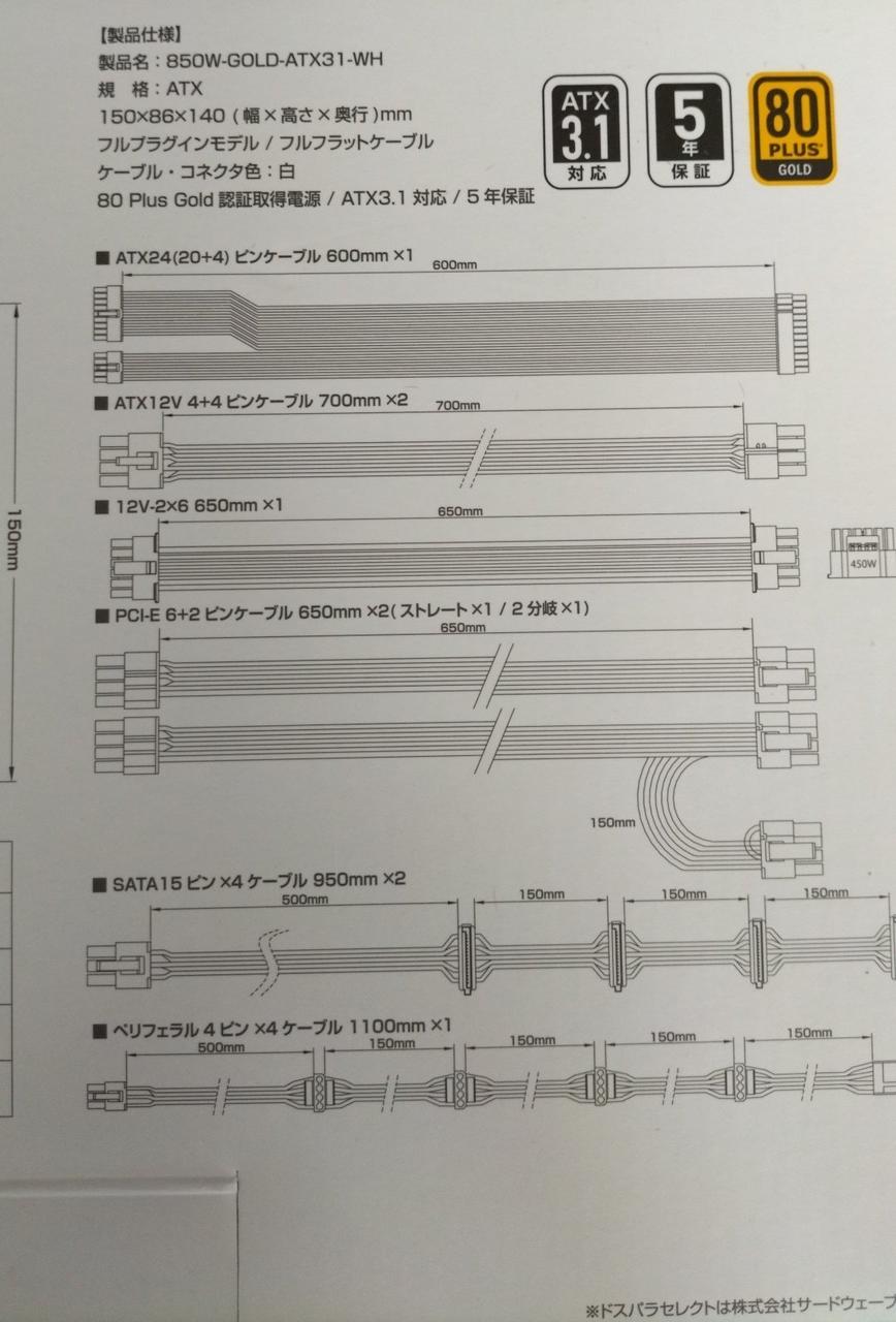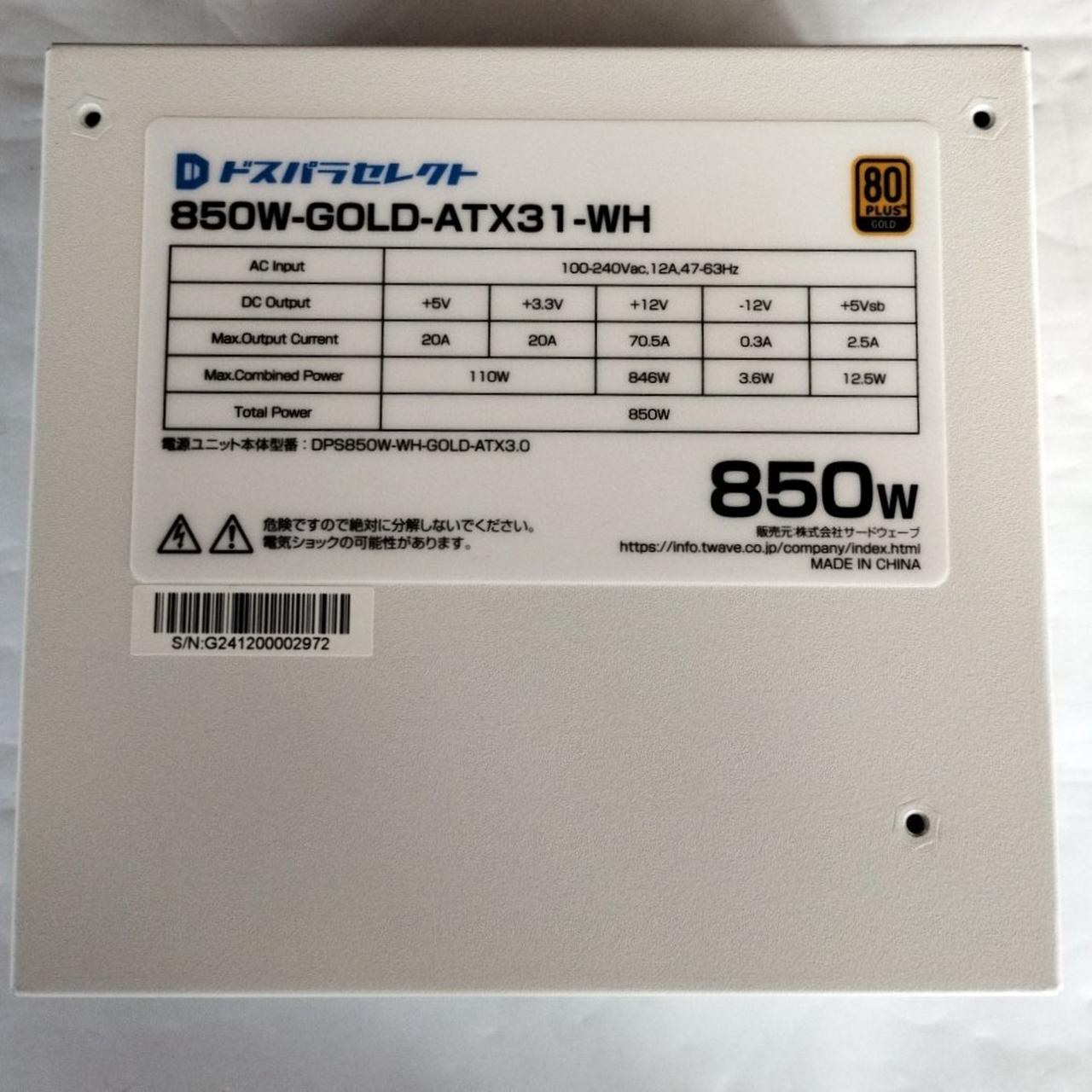 型番:850W-GOLD-ATX31-WH