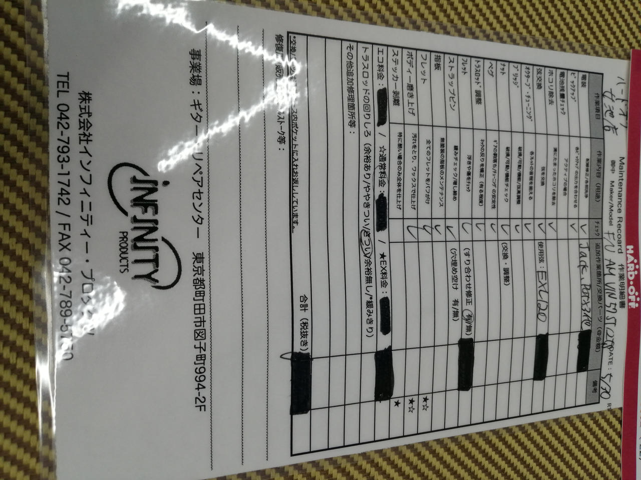(株)インフィニティープロダクツ様にて、調整&メンテナンス済みです。作業内容は別紙の確認をお願いします。 |