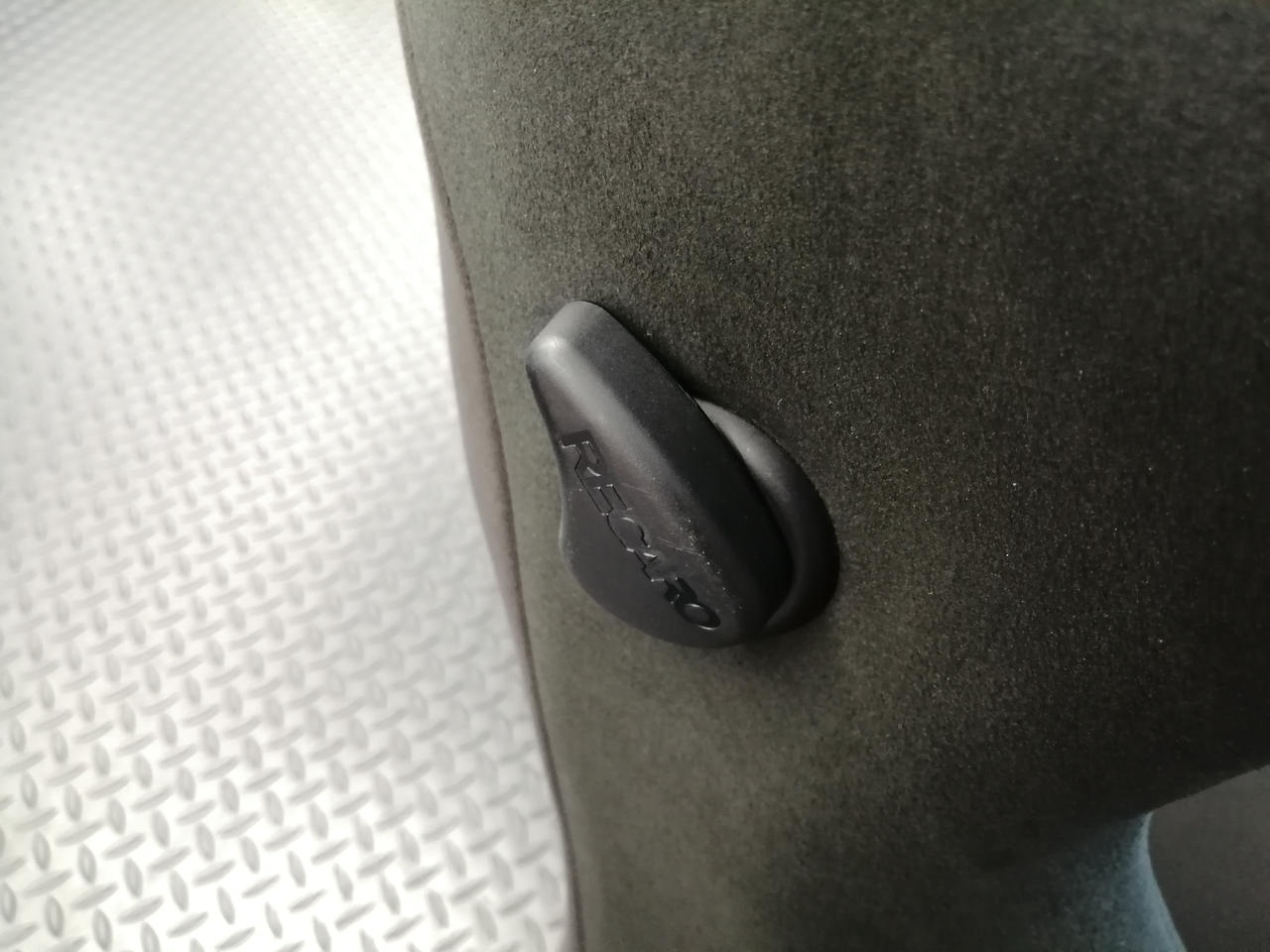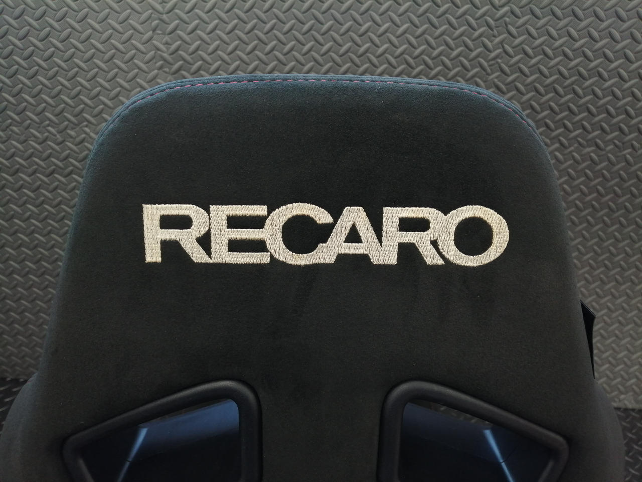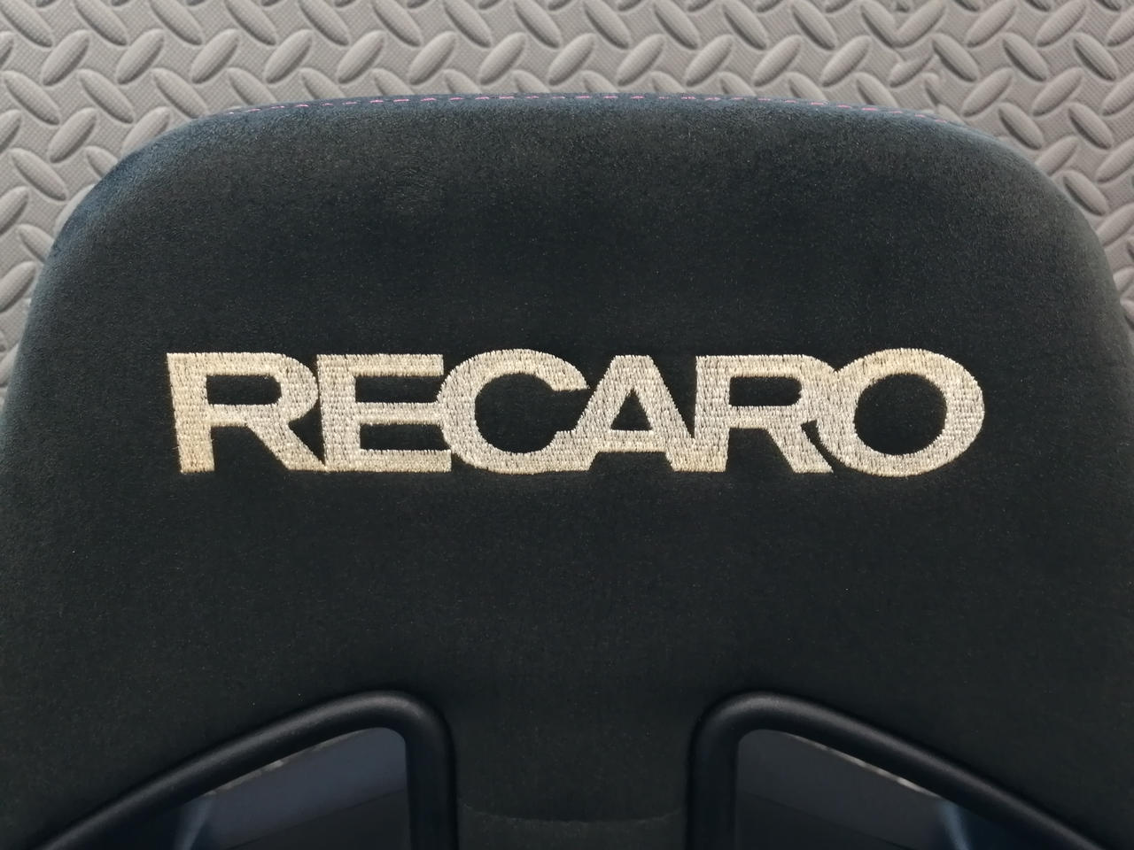 頭が当たる部分のRECAROロゴが茶色がかっています |