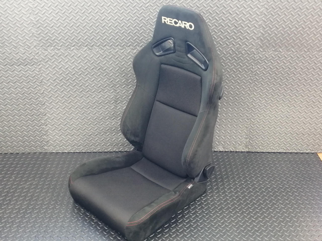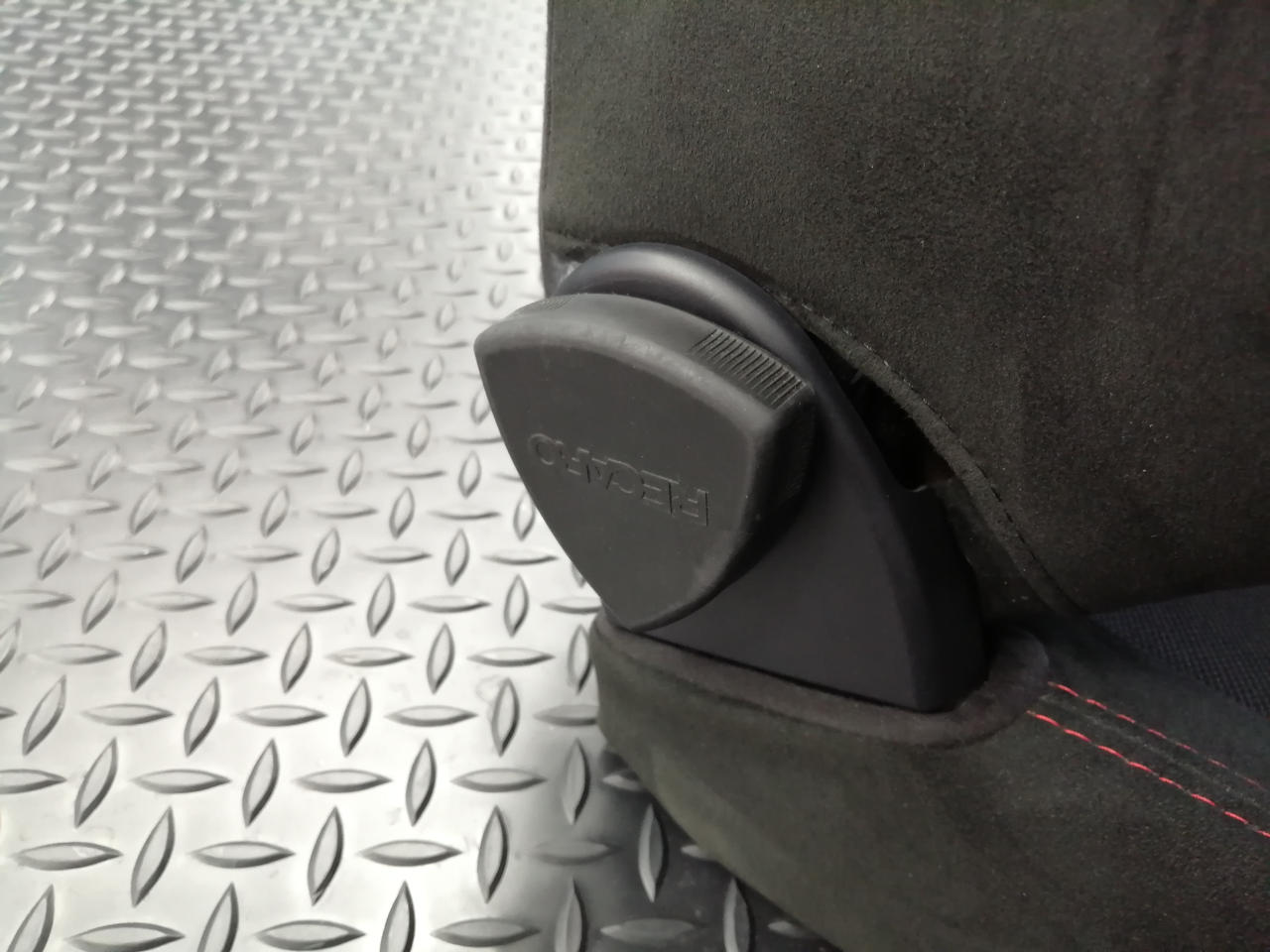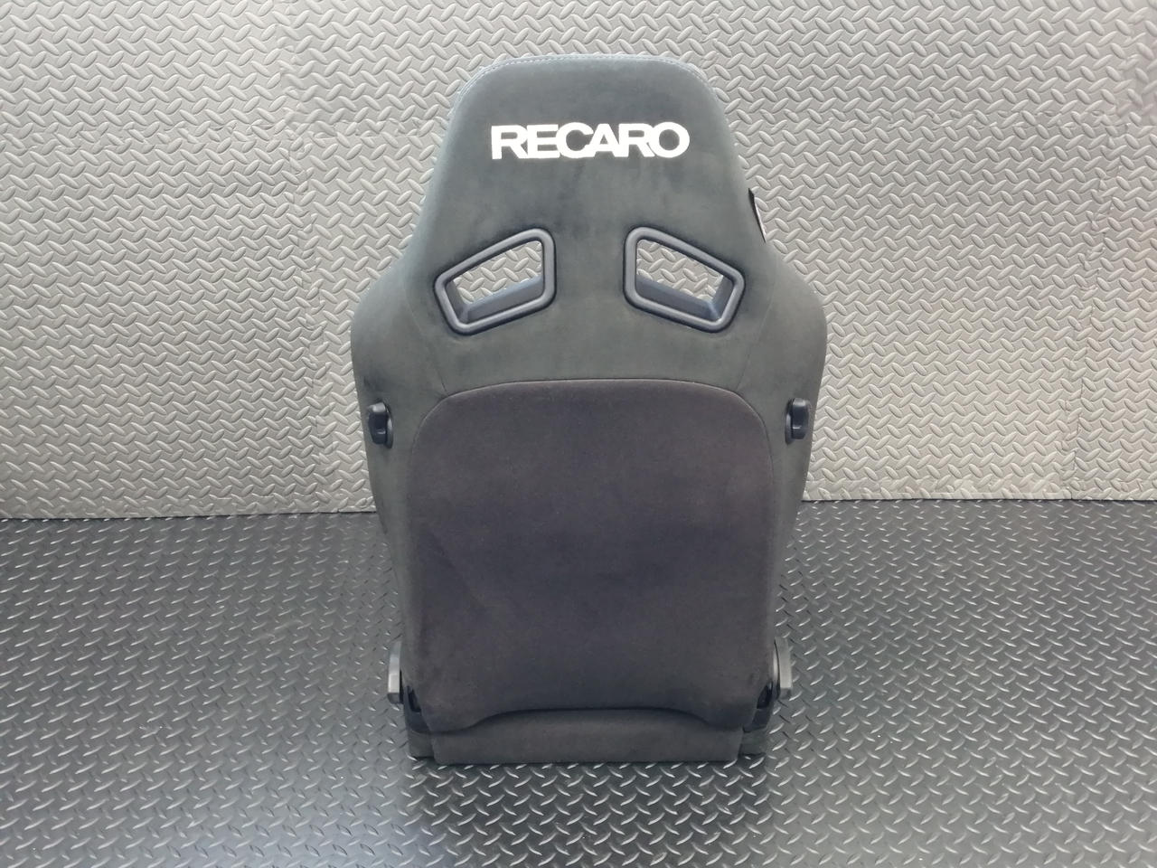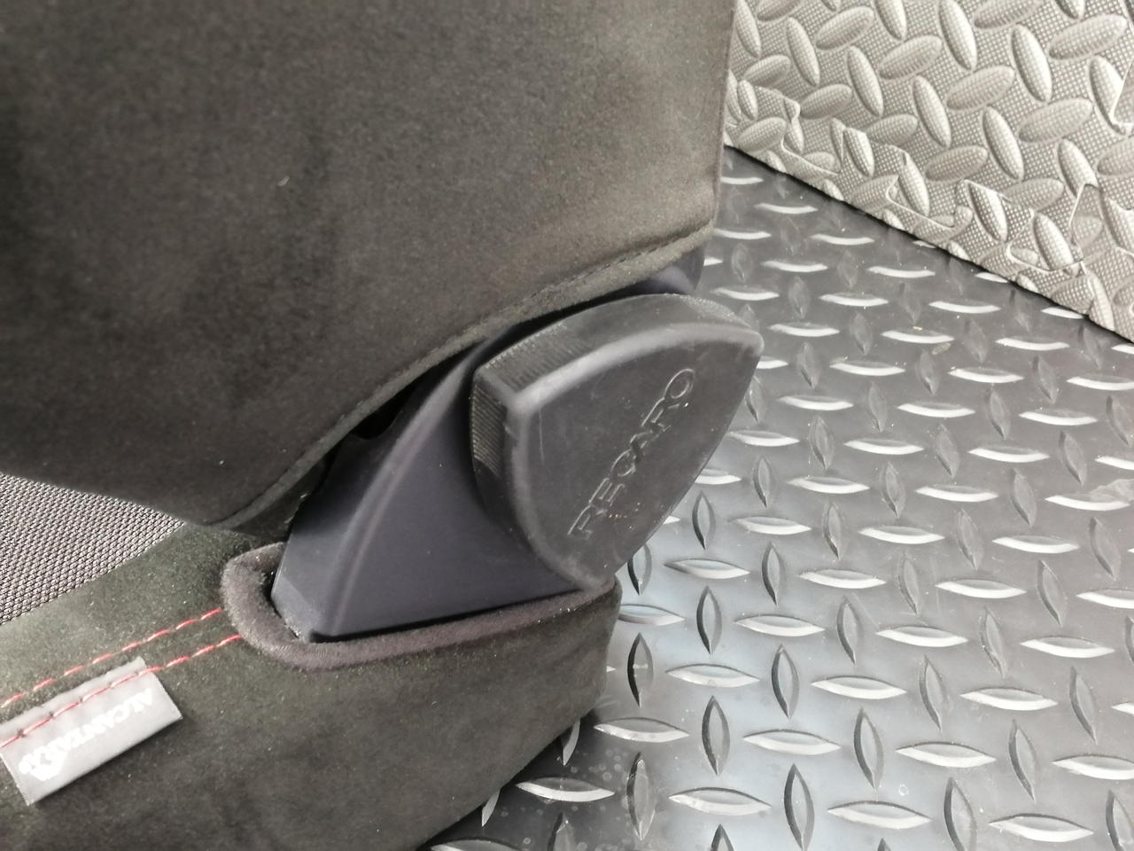 頭が当たる部分のRECAROロゴが茶色がかっています |