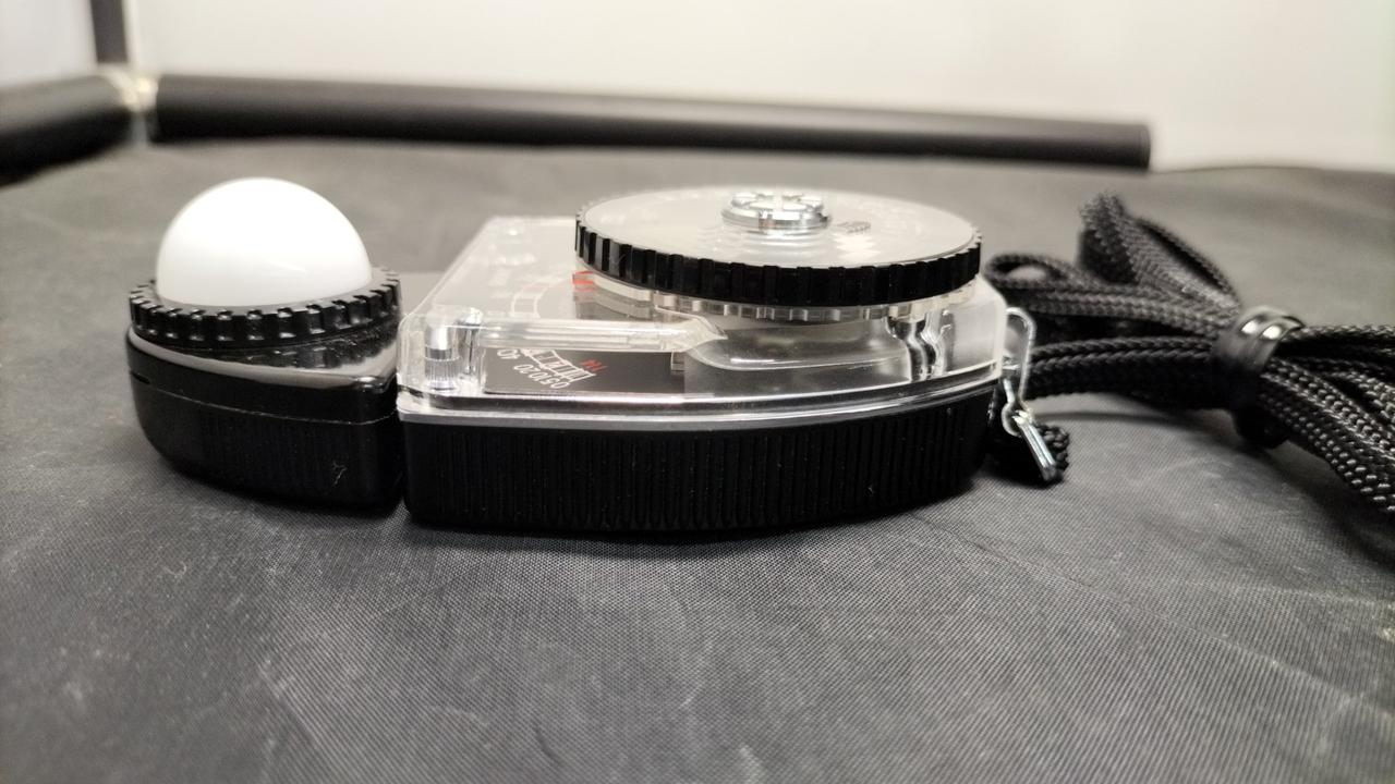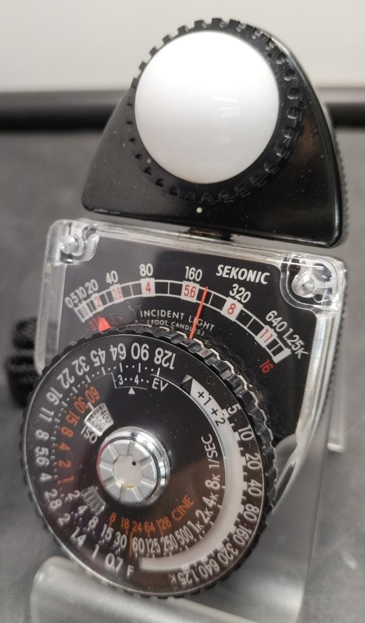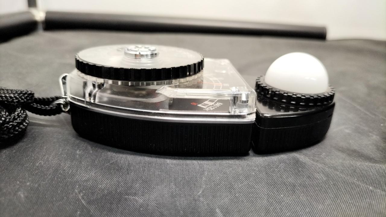多くのカメラマンに愛用されている露出計!電池不要です。受光部端に曇りがあります。