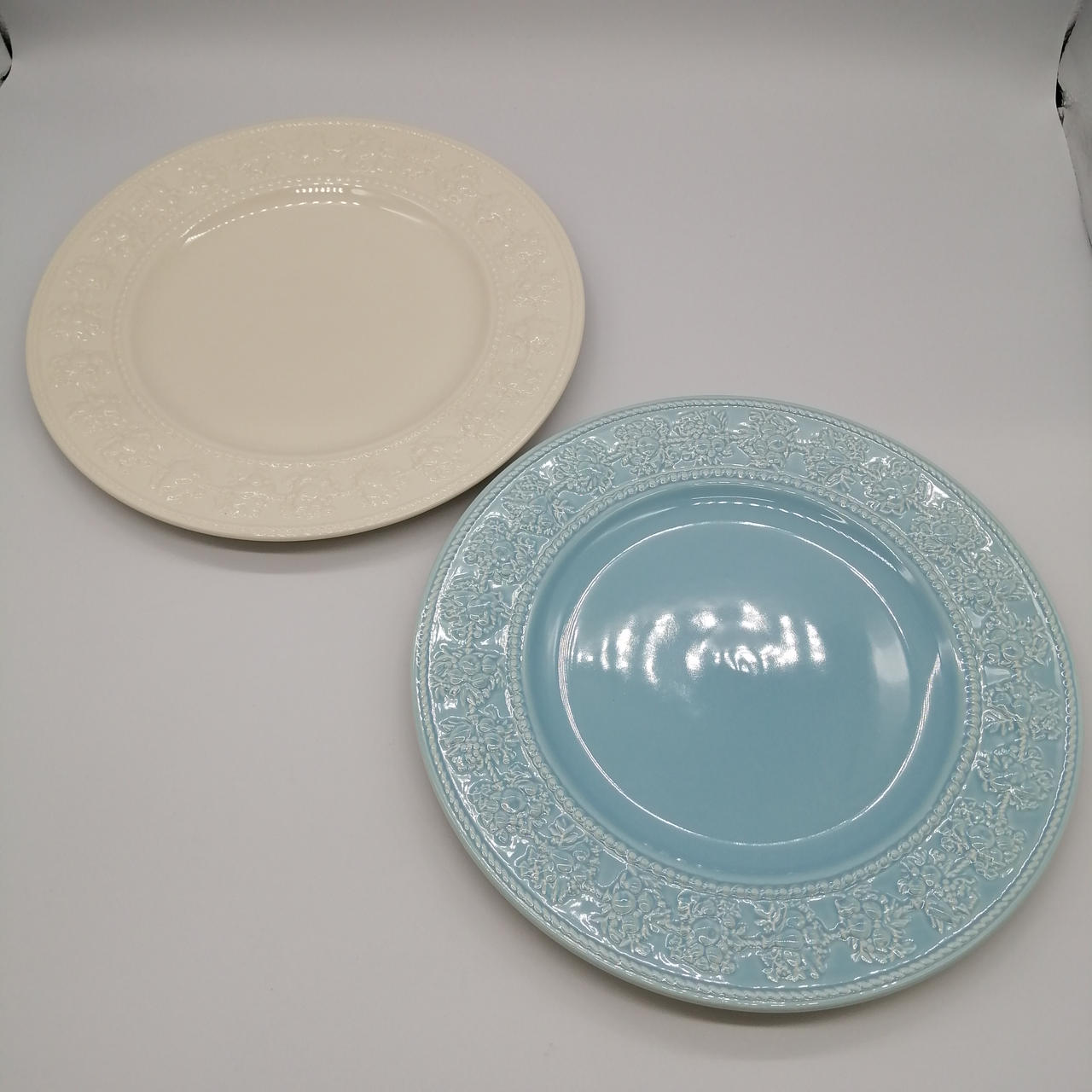フェスティビティ アイボリー&ブルー プレート 27cm ペア