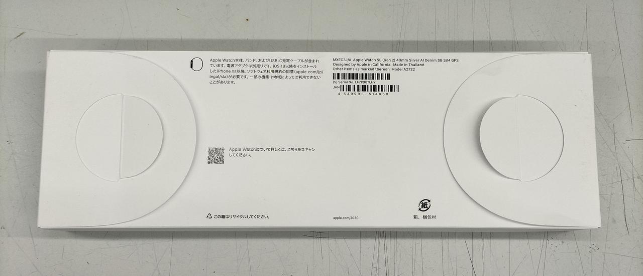 40mm/Retinaディスプレイ 394x324(Ion-Xガラス)/ストレージ32GB/電子マネー、Suica/転倒検出/BT通話/WatchOS:11.5 |