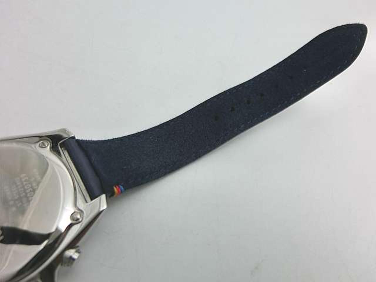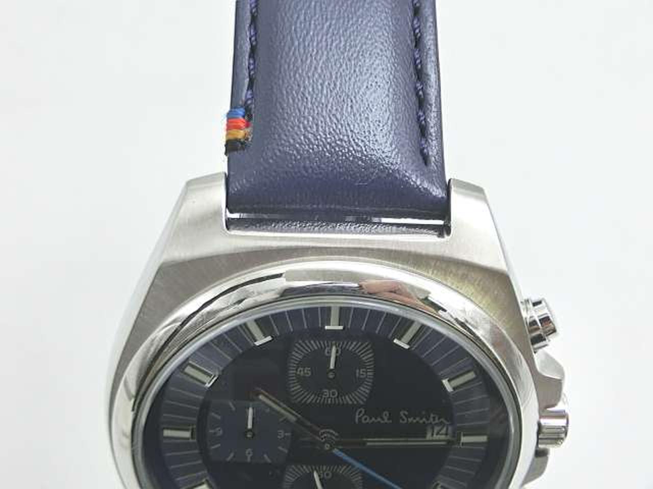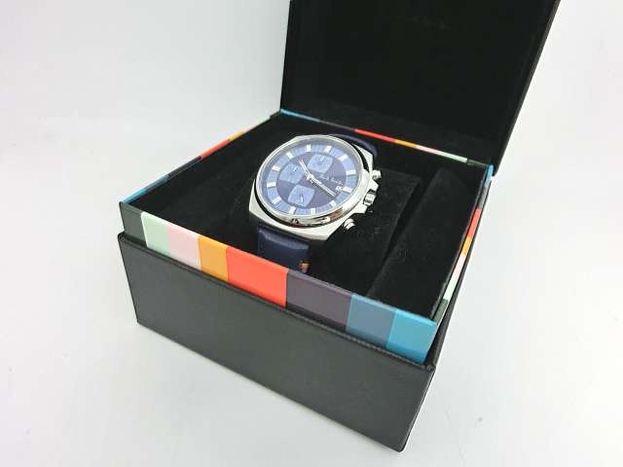 定番人気の「Final Eyes Chronograph」にシックなカラーリングのモデルが登場。ストラップにはポール・スミスのデザインシグネチャーであるアーティストストライプから厳選された4色のカラーステッチが施されています。ダイヤルやベルトのブルーカラーが腕元で目を惹くデザインです。秒針のカラーリングにもこだわりを感じる1本です。 |