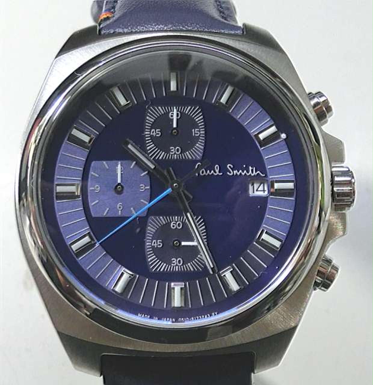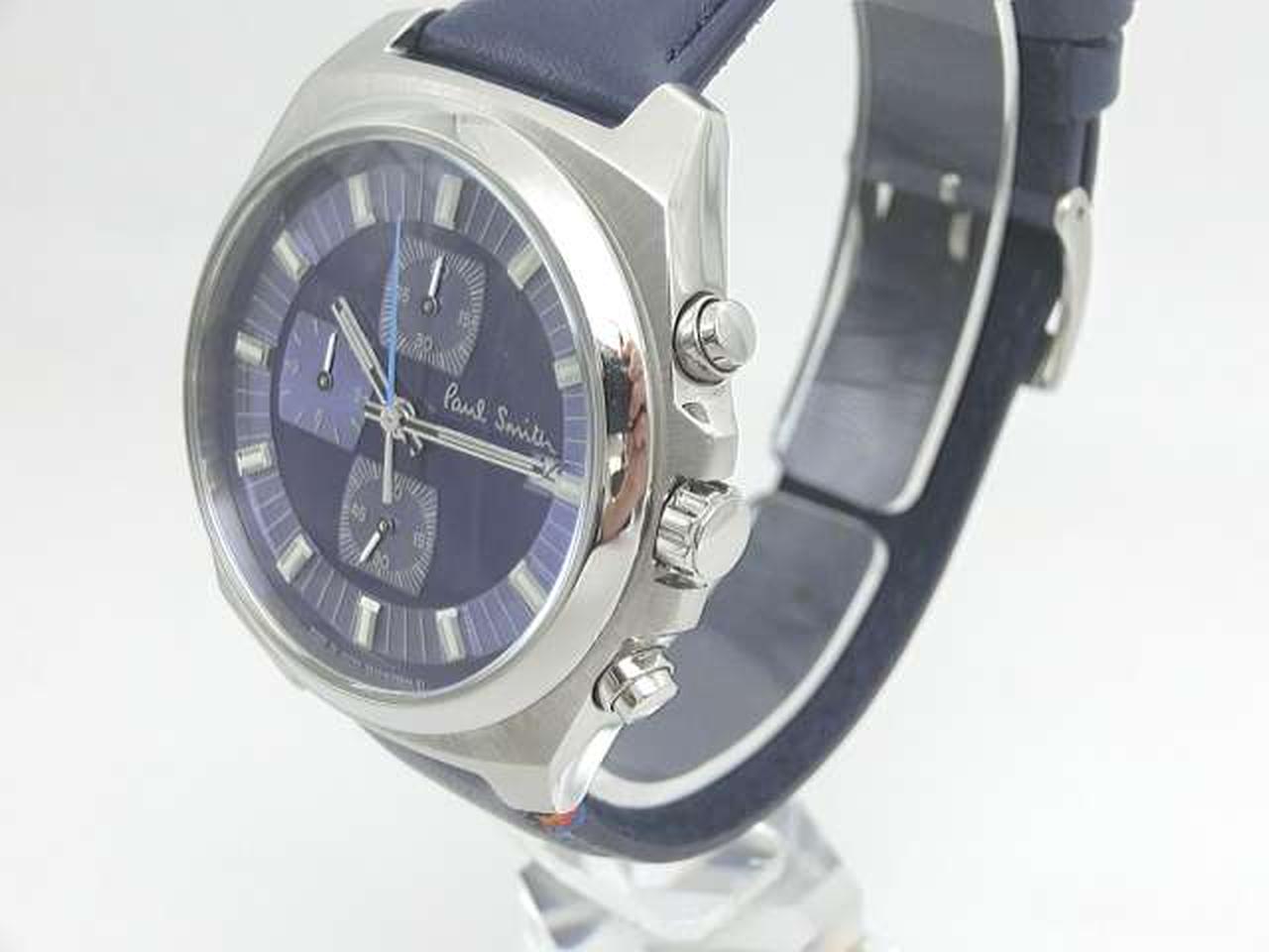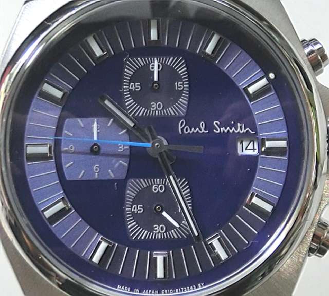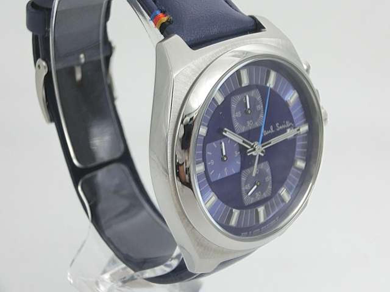 定番人気の「Final Eyes Chronograph」にシックなカラーリングのモデルが登場。ストラップにはポール・スミスのデザインシグネチャーであるアーティストストライプから厳選された4色のカラーステッチが施されています。ダイヤルやベルトのブルーカラーが腕元で目を惹くデザインです。秒針のカラーリングにもこだわりを感じる1本です。 |