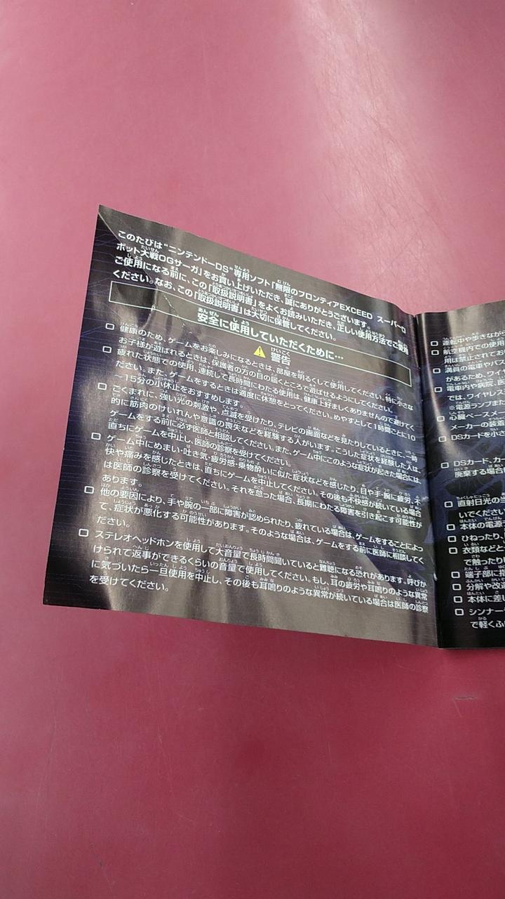 説明書の表紙のページが斜めに折跡がついています。 |