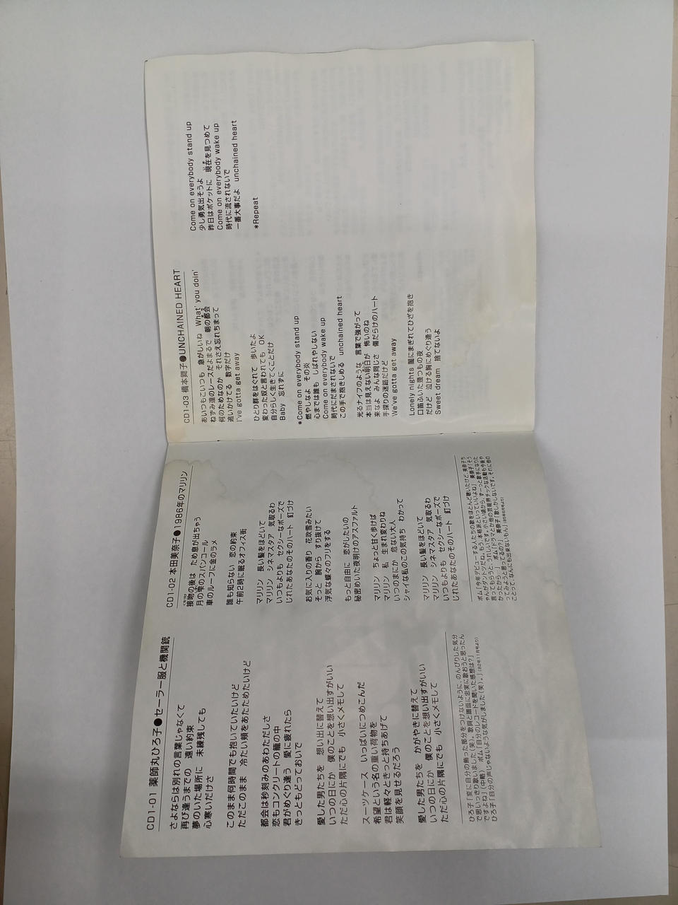 歌詞カードによれ、黄ばみあり。CDに目立ったキズはありません。 |