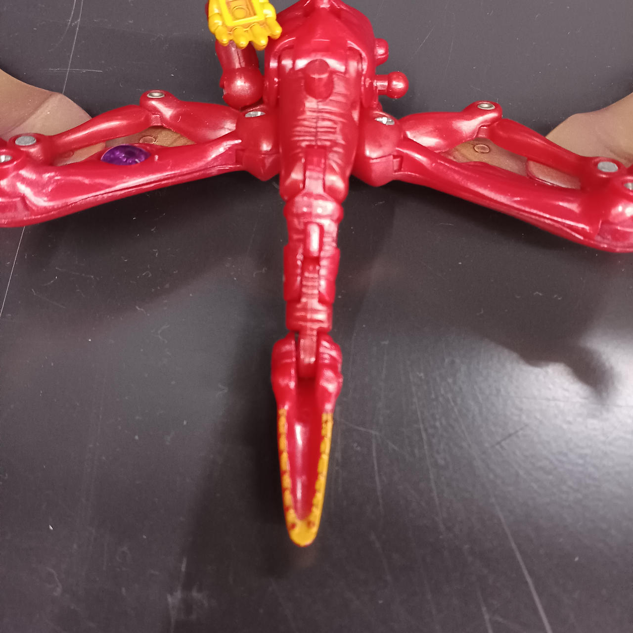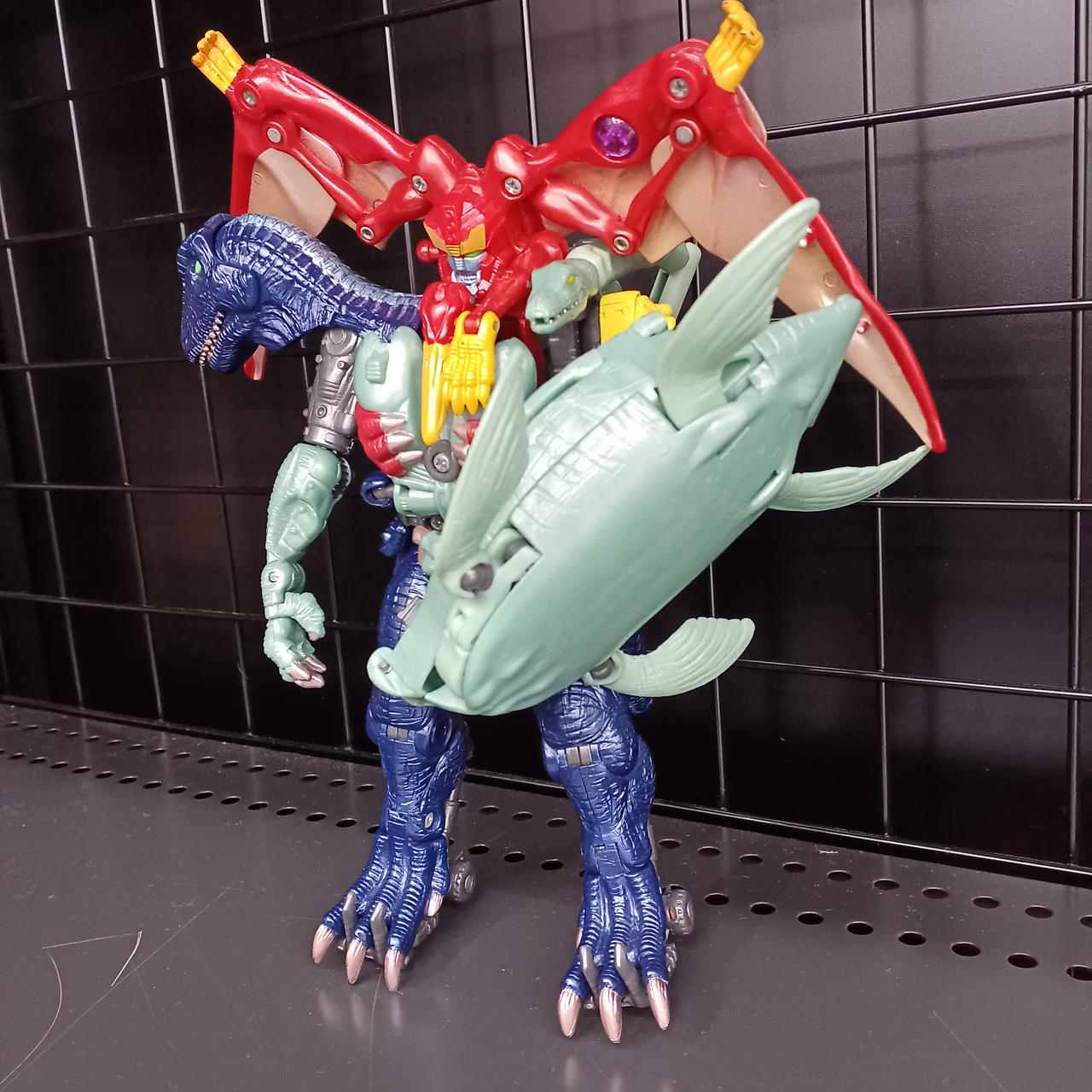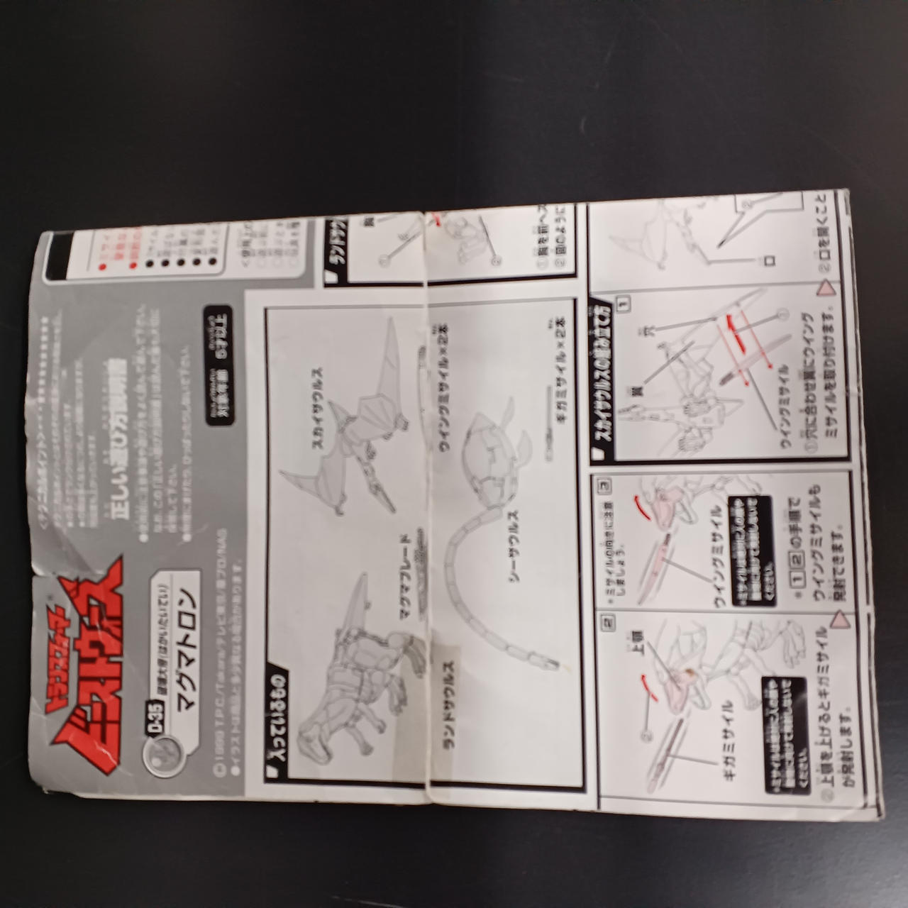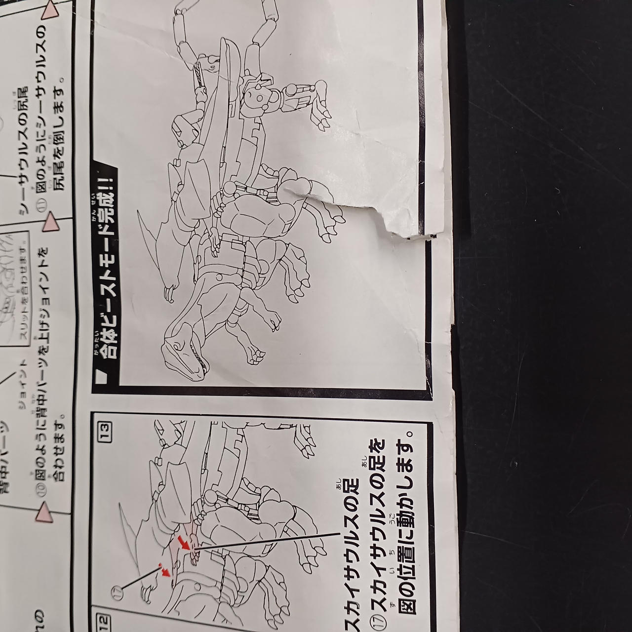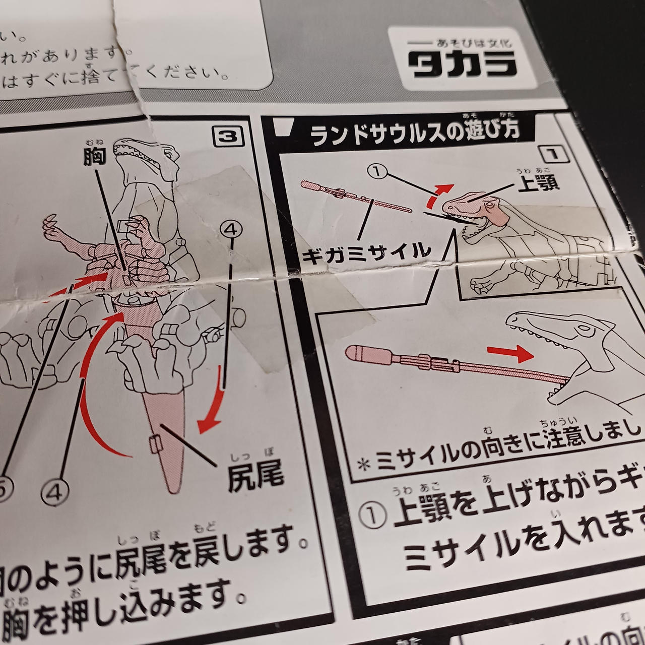 ランドサウルス胸のハッチ、スカイサウルス右足、くちばし、ミサイル欠品。 |