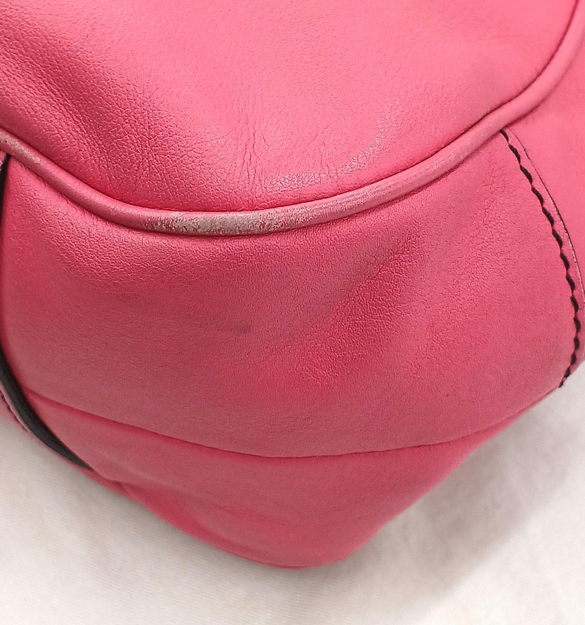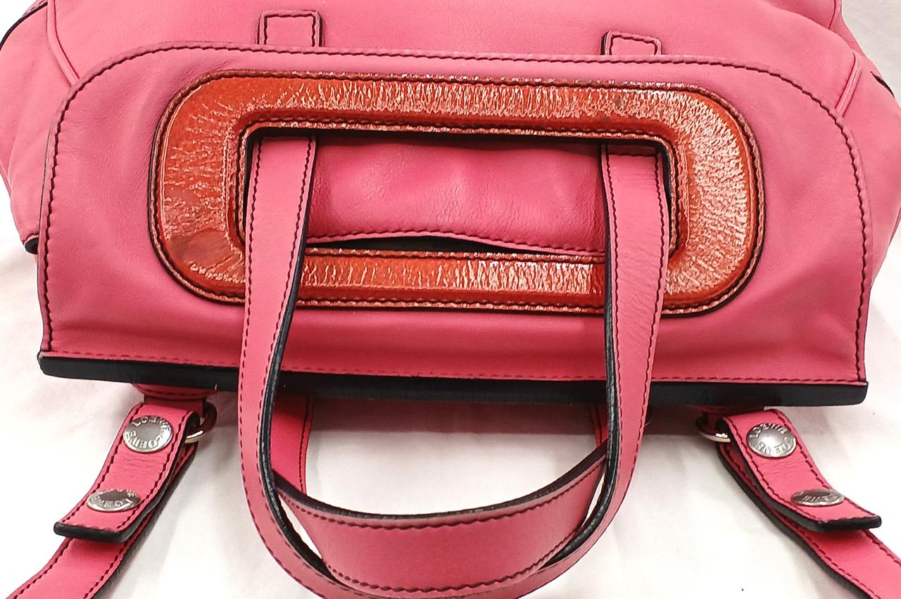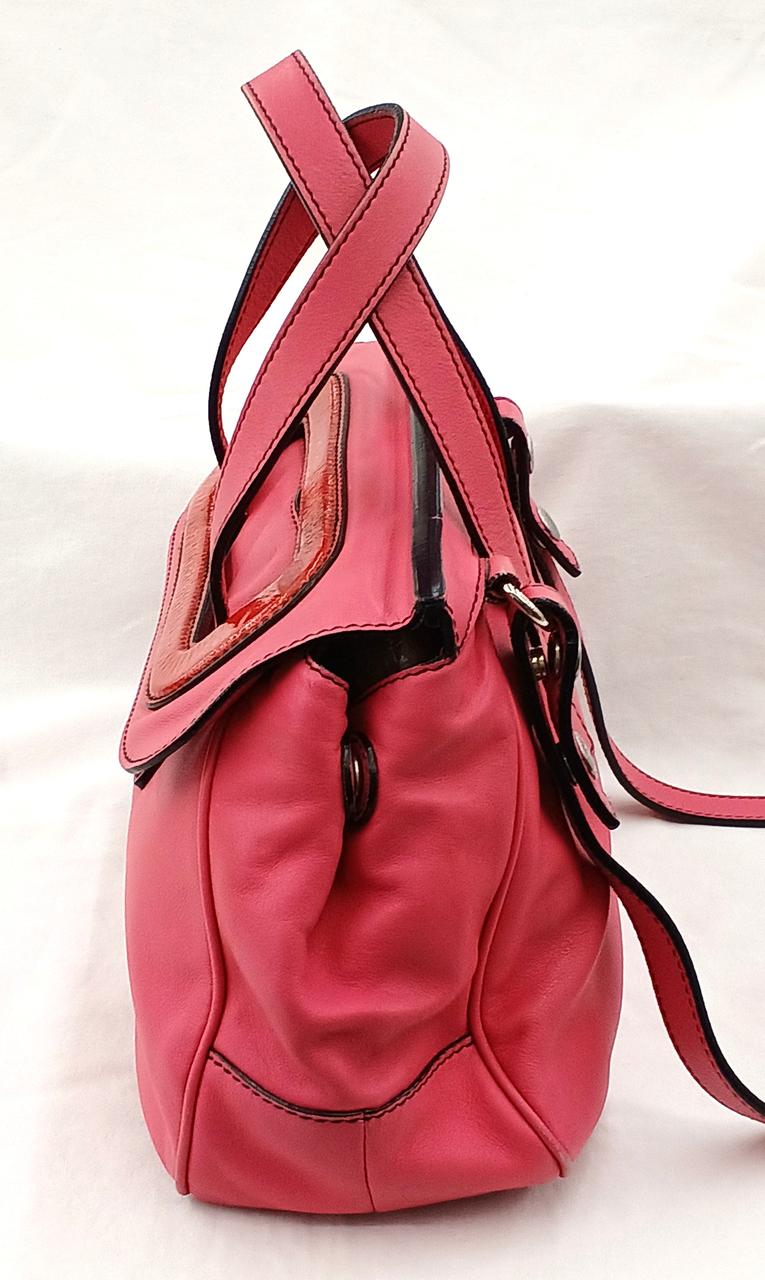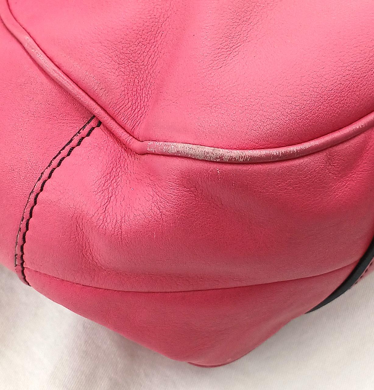 外側…角擦れや各部に細かい傷/汚れがあります。ショルダーストラップ端部に一部劣化ぎあります。また開閉部のエナメル部分に汚れや若干のベタつきがあります。 |