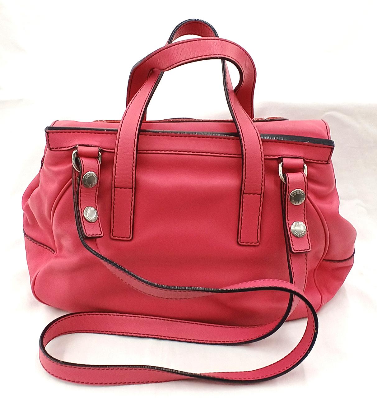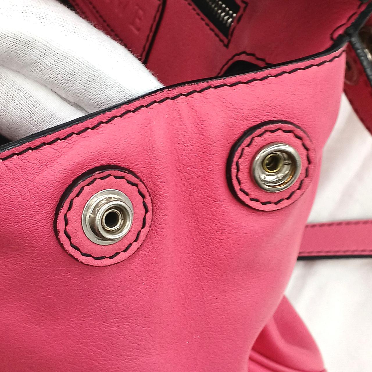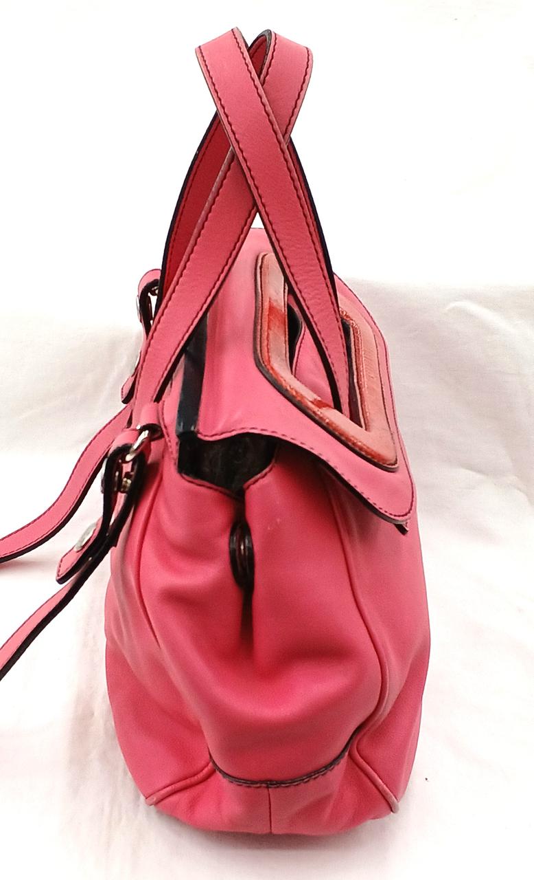 外側…角擦れや各部に細かい傷/汚れがあります。ショルダーストラップ端部に一部劣化ぎあります。また開閉部のエナメル部分に汚れや若干のベタつきがあります。 |
