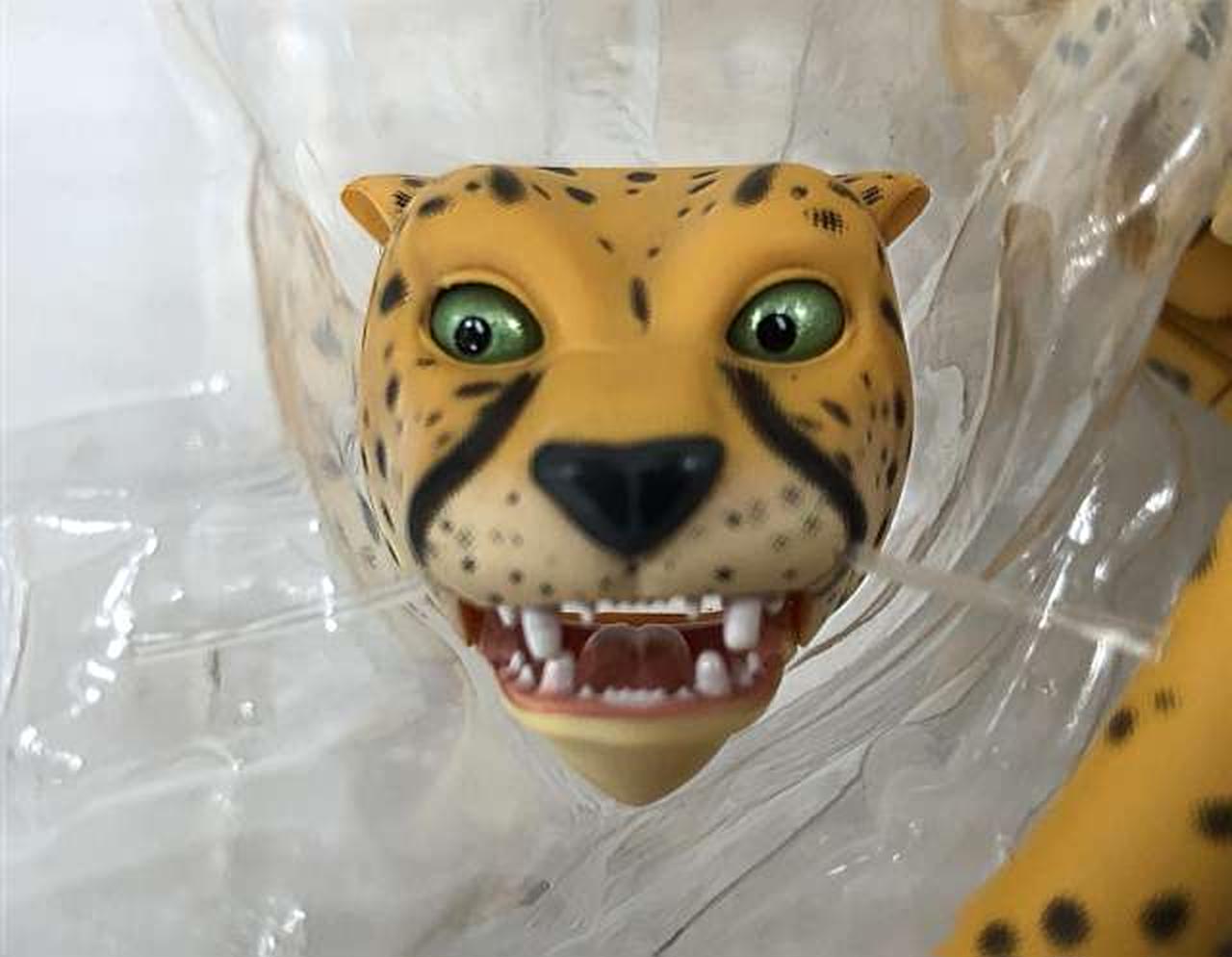 ひげはナイロン製のテグスを使用しリアルに再現。交換用頭部(怒り)・(驚き)付属、目線の向きが異なる目のパーツを交換することで9パターンの組み合わせを再現可能。 |