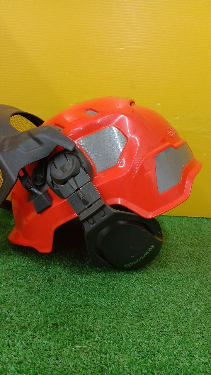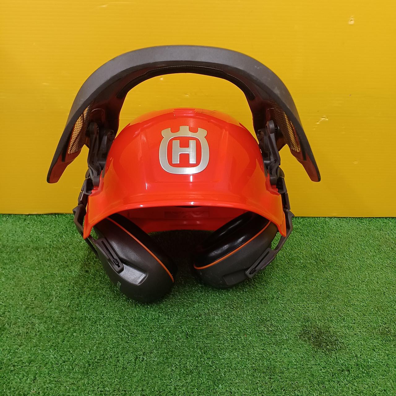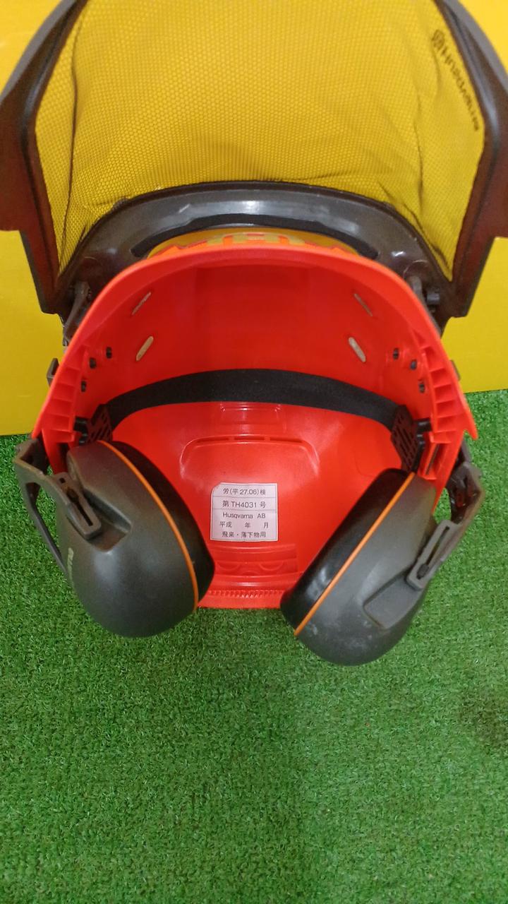 バイザー、ひさし、イヤマフ、アゴヒモを完備。バイザーは水はけもよく視界良好 |