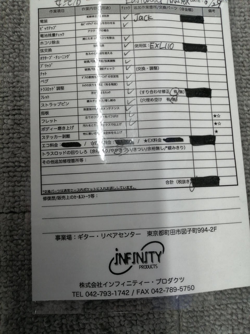 (株)インフィニティープロダクツ様にて、調整&メンテナンス済みです。作業内容は別紙の確認をお願いします |
