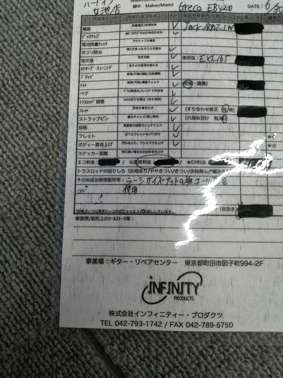 (株)インフィニティプロダクツ様にて、調整&メンテナンス済み。作業内容は別紙の確認をお願いします。 |