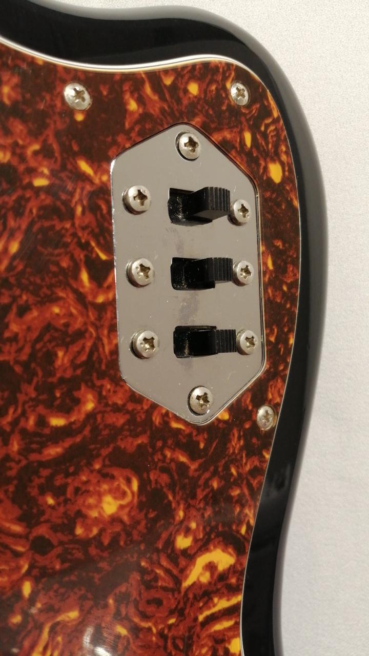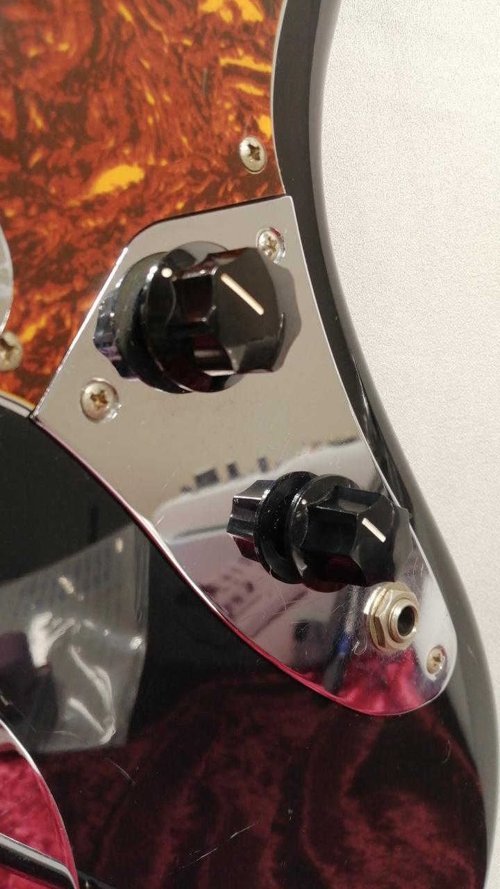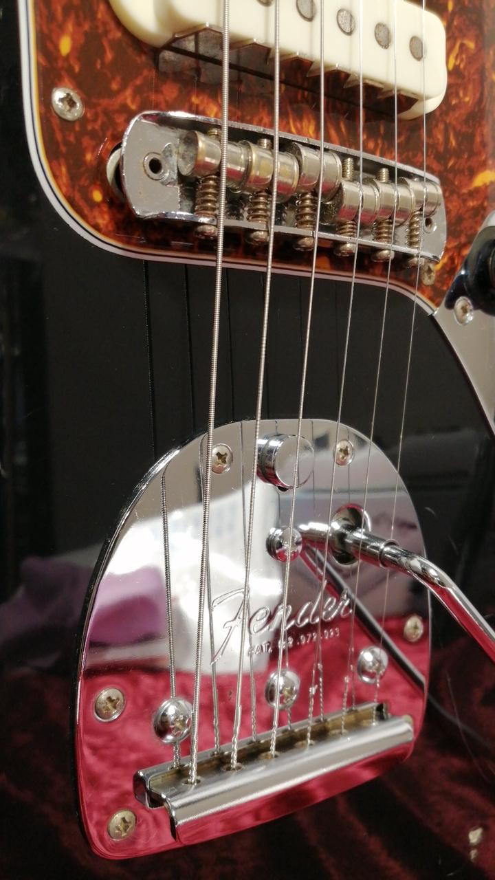 Fender Japan存命時代のスタンダードラインのJaguar。シリアルから1999~2002年あたりのダイナ楽器製造。リアピックアップが交換してあり、Roswell Pickupsのものかと思われます。サドルがムスタングの物に交換され弦落ち対策も万全です。プレイヤーズコンディションですが、クリスピーなジャガーサウンドが充分に楽しめます。 |
