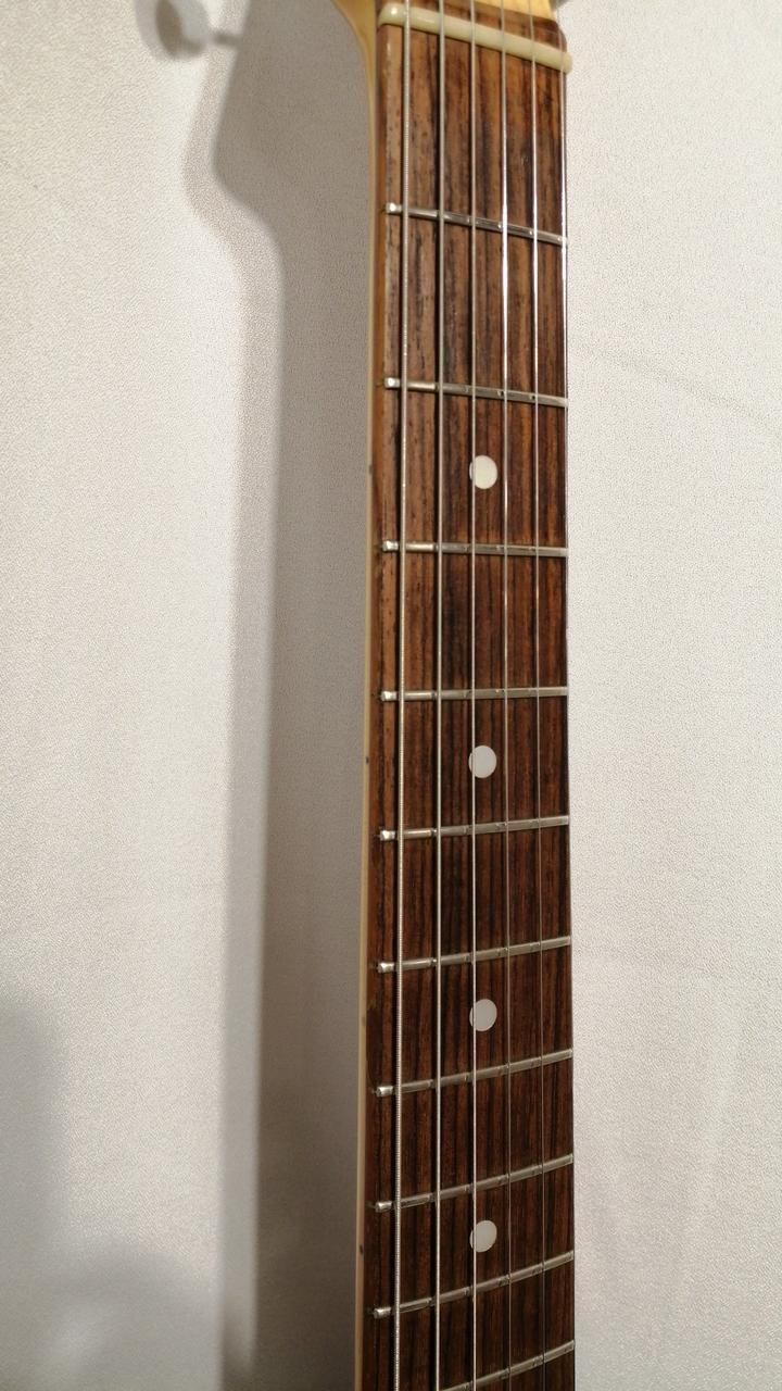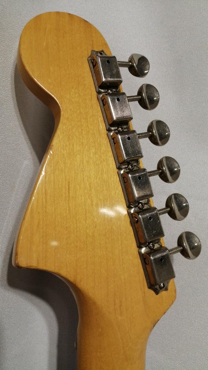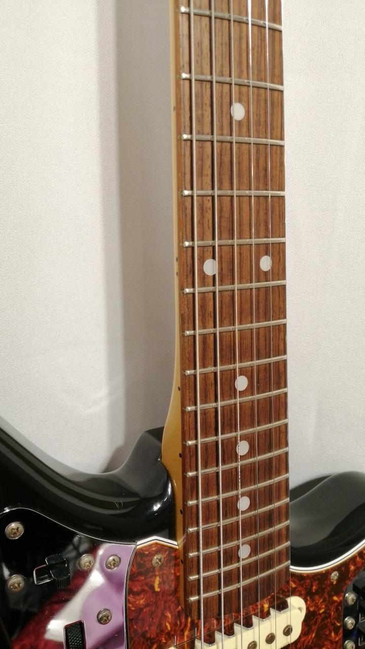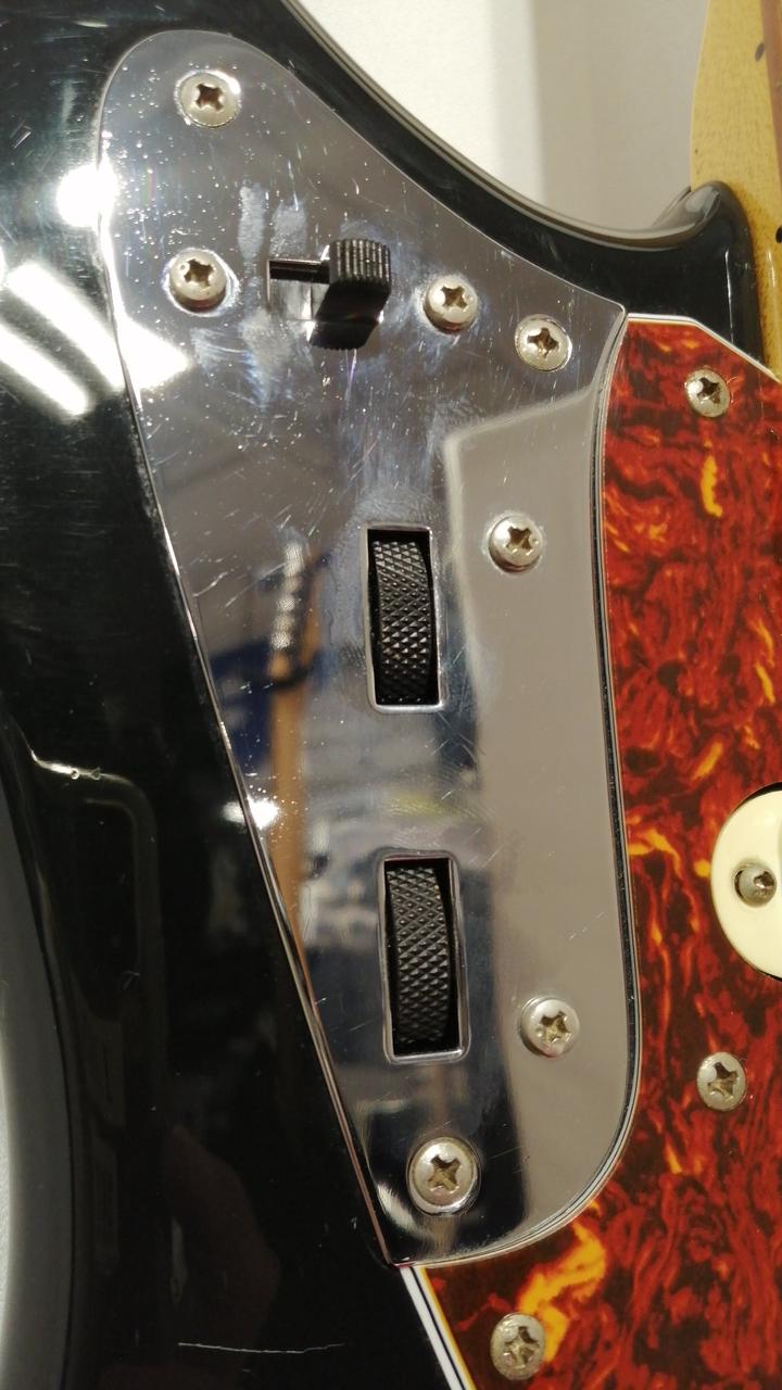 Fender Japan存命時代のスタンダードラインのJaguar。シリアルから1999~2002年あたりのダイナ楽器製造。リアピックアップが交換してあり、Roswell Pickupsのものかと思われます。サドルがムスタングの物に交換され弦落ち対策も万全です。プレイヤーズコンディションですが、クリスピーなジャガーサウンドが充分に楽しめます。 |