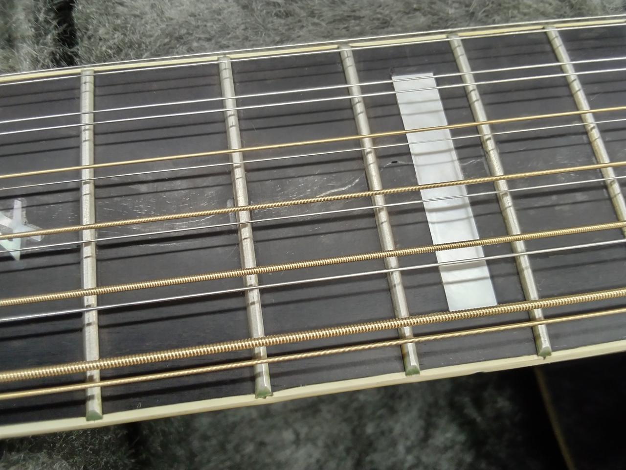 薄胴の 87シリーズの12弦版:YD87-12 のカスタムバージョンの1本です。 木材構成もあり高域に伸びる印象の出音で、12弦の響きも併せて、とても印象的な響きの一本です。 |