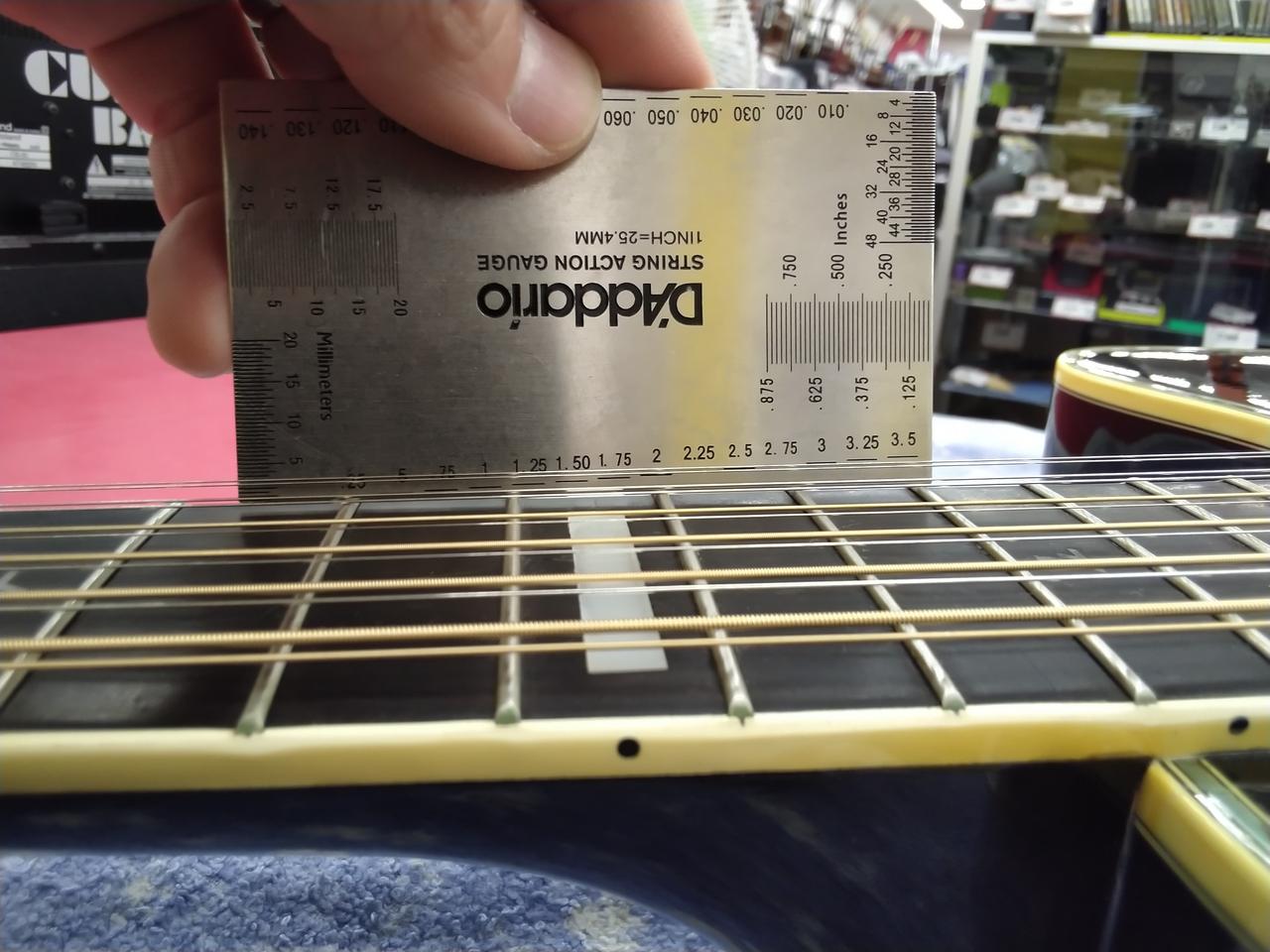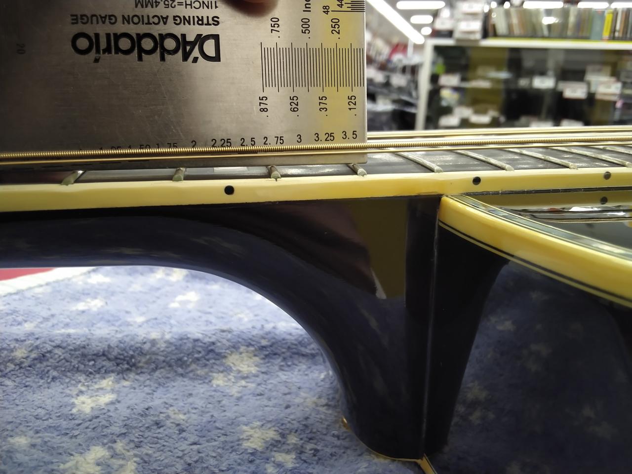 ※商品画像は、レギュラーチューニングの状態で撮影しています。トラスロッドもレギュラーチューニングの状態を基準にしてあります。 全てのポジションで演奏確認を行い、音詰まりがないこと音が消えないことを基準にセッティングしています。弦高の数値は、気候・ネックコンディション・チューニング・弦のゲージの具合等の要因で上下しますので、あくまでの参考値となります。 |