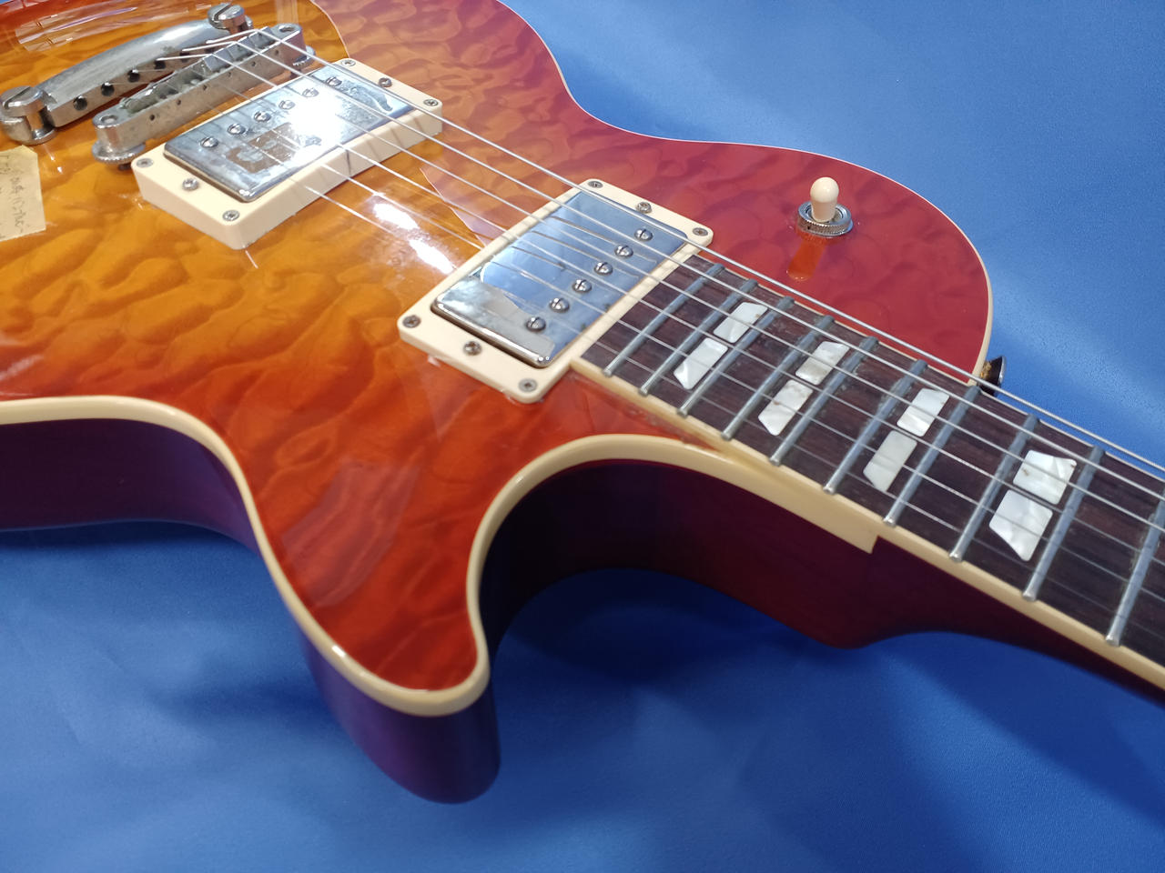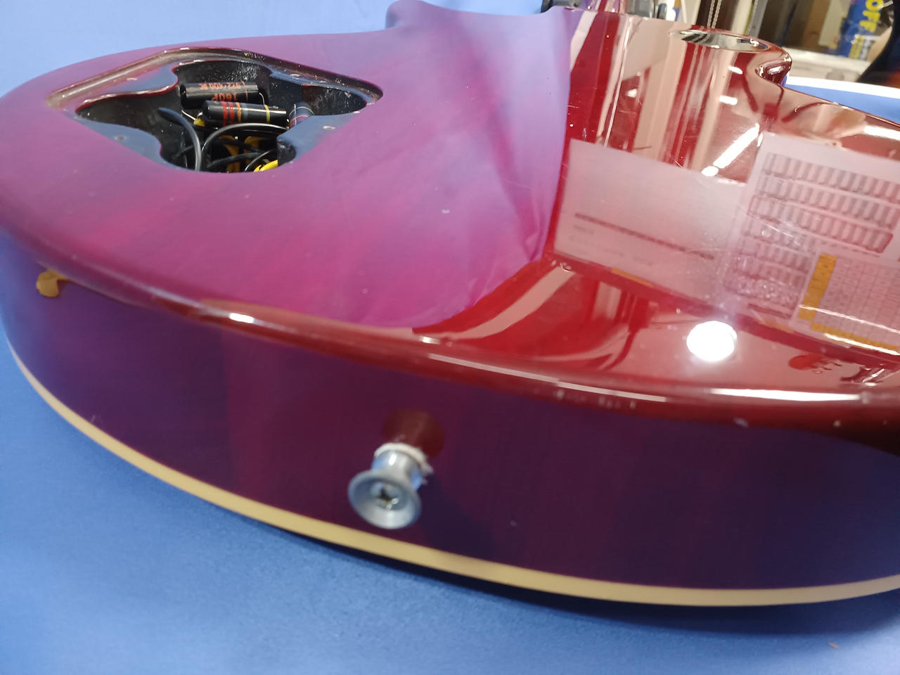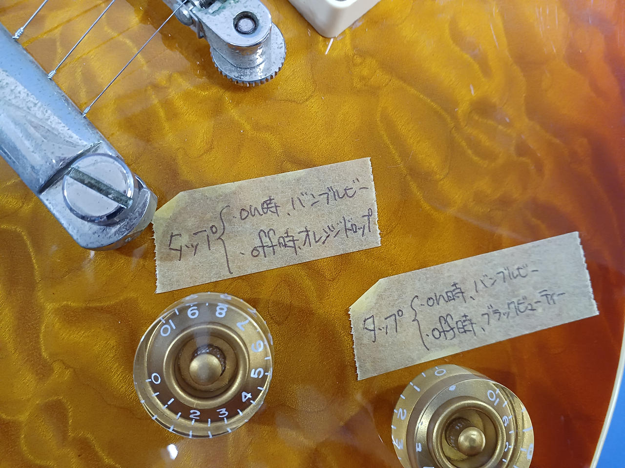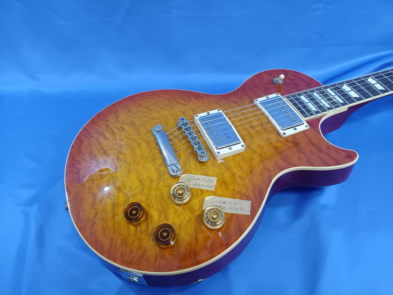 当店にて魔改造したレスポールタイプ。コイルタップスイッチによりコンデンサー切り替えが可能! |