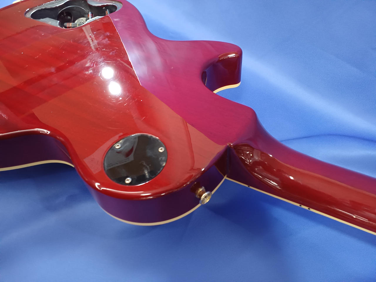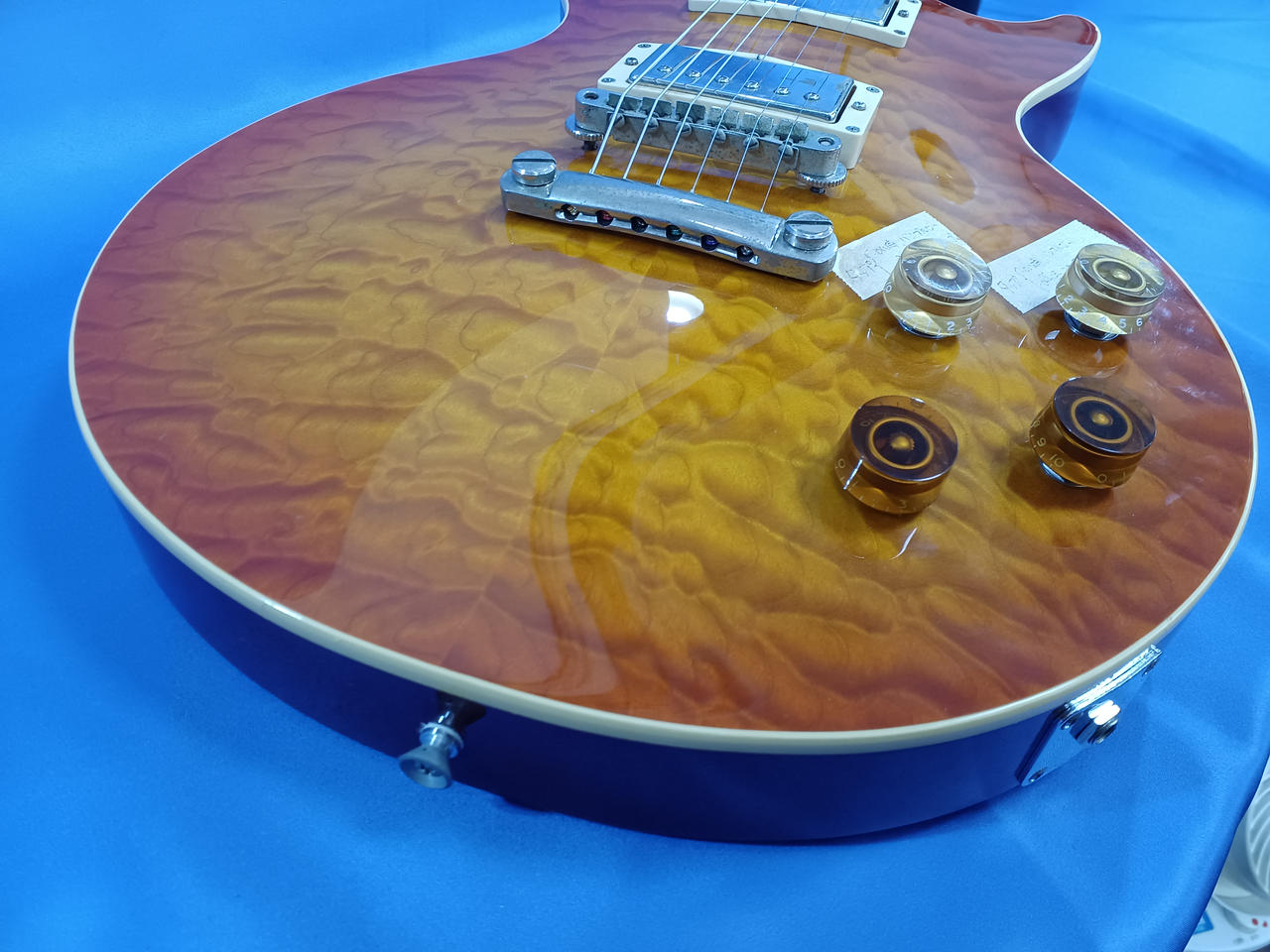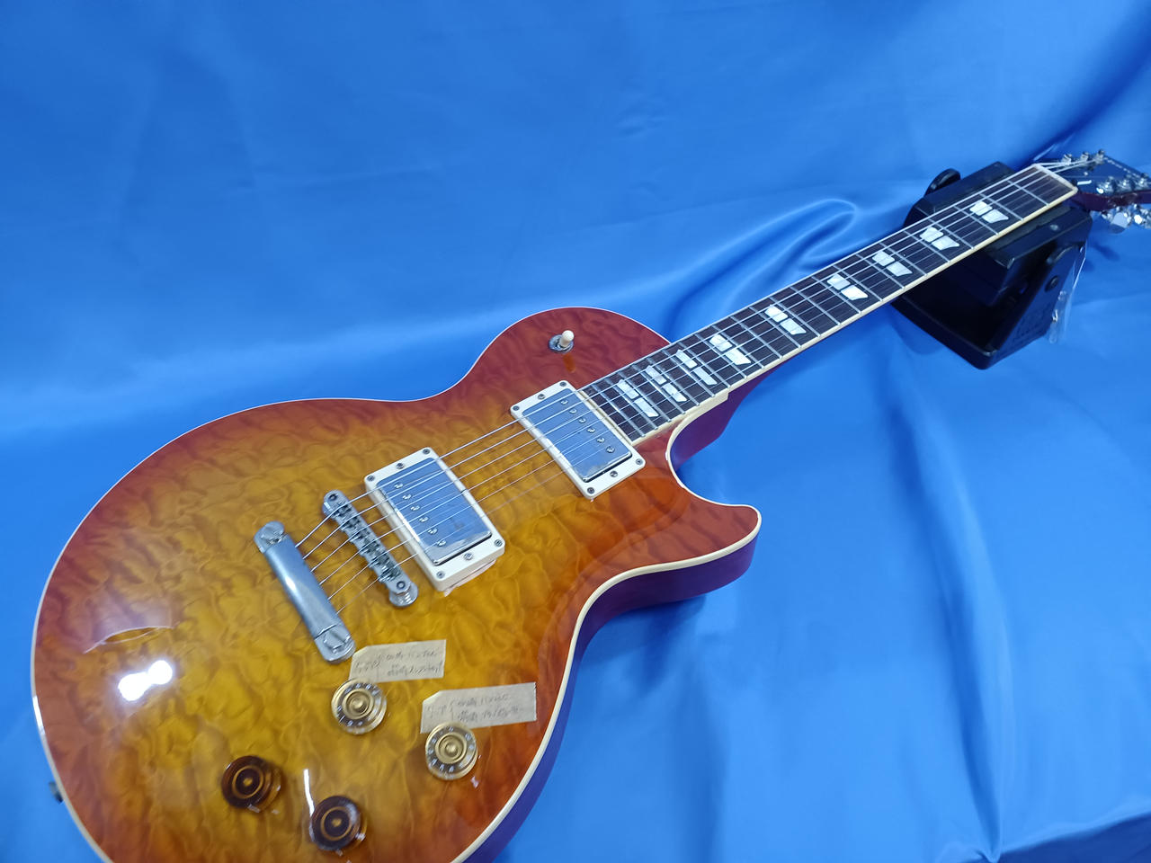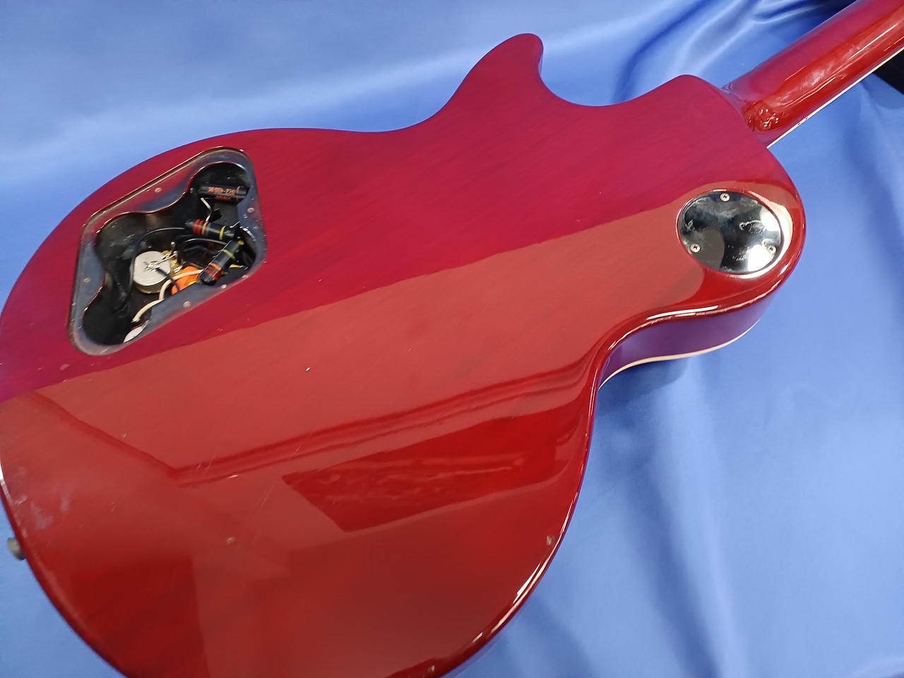 当店にて魔改造したレスポールタイプ。コイルタップスイッチによりコンデンサー切り替えが可能! |