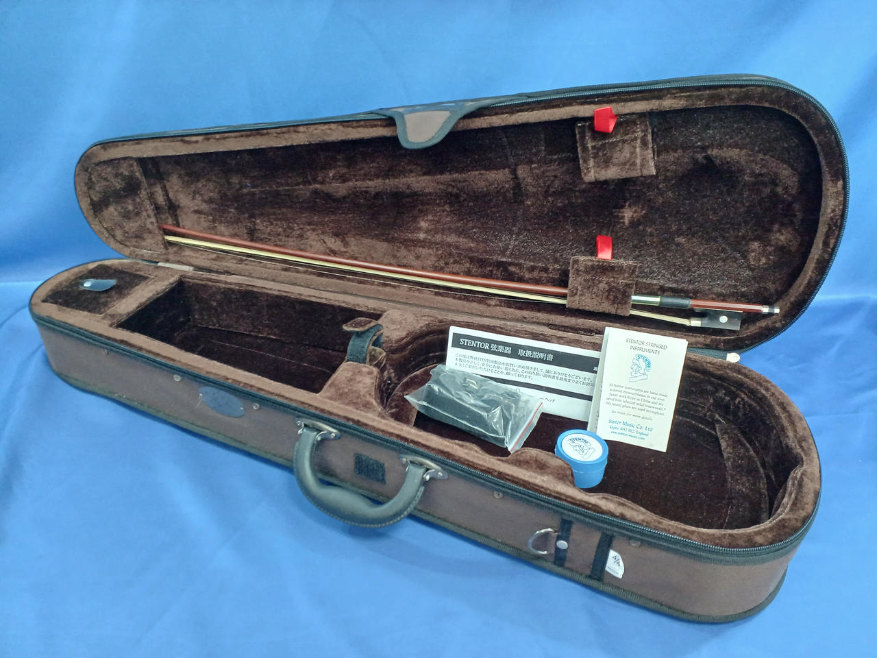 初心者向けの入門セット。ペグが固め、弓は毛が劣化しています。 |