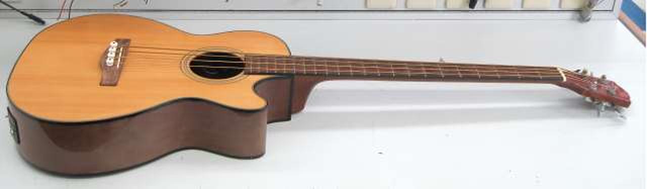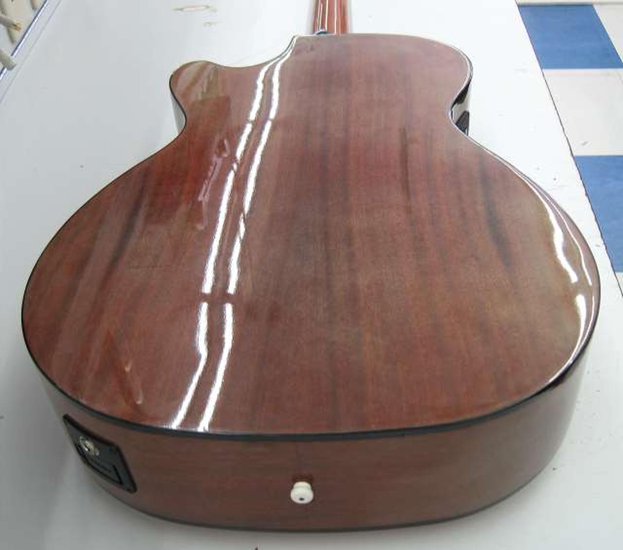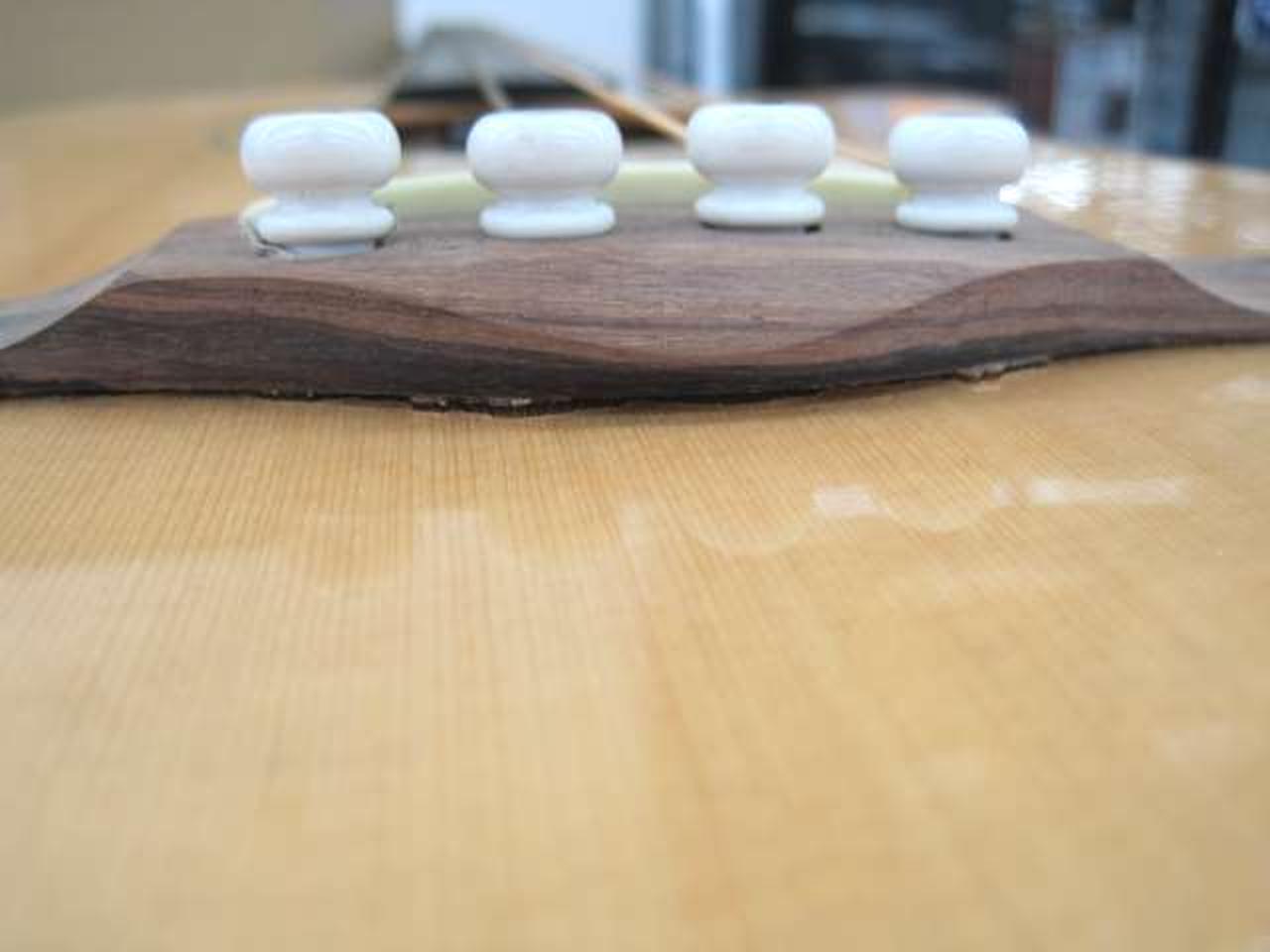 試奏時、アンプから音出ました。ブリッジ浮いています。白濁あり |