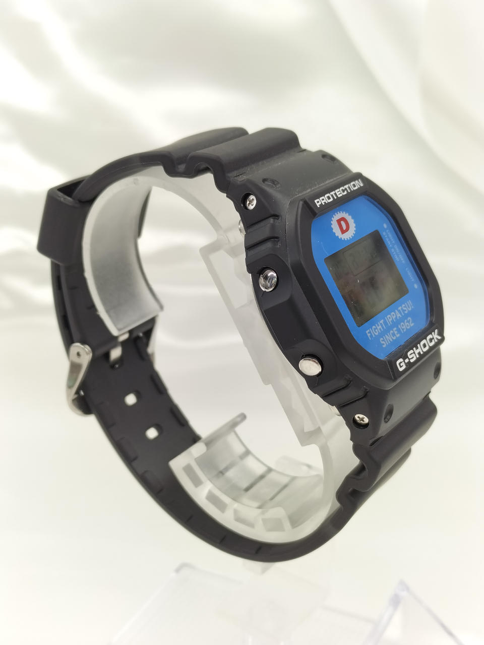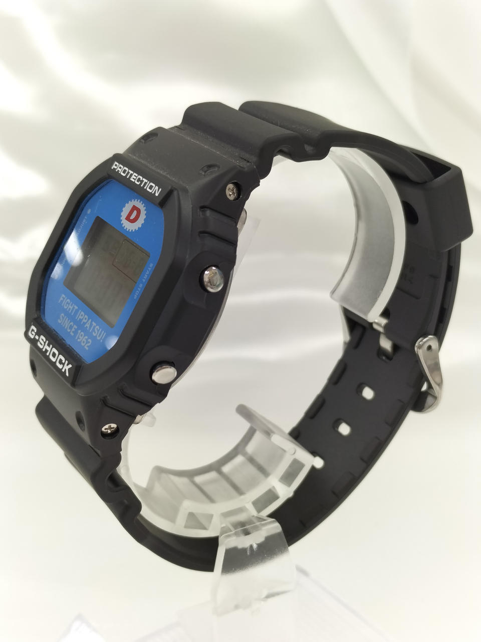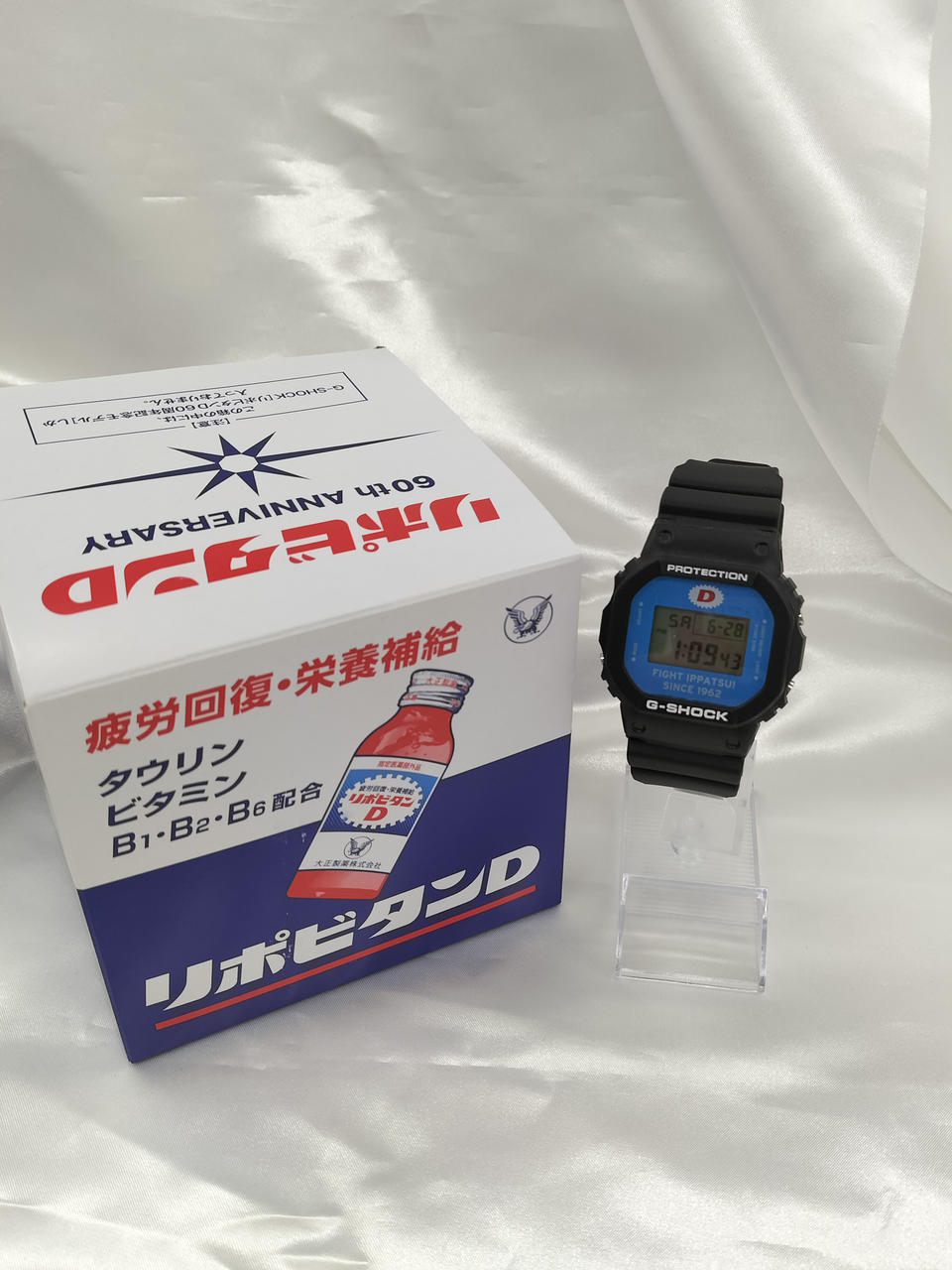 リポビタンDとコラボのユニークなG-SHOCKです。裏蓋には大正製薬のシンボルマークの鷲が刻印されています。 |