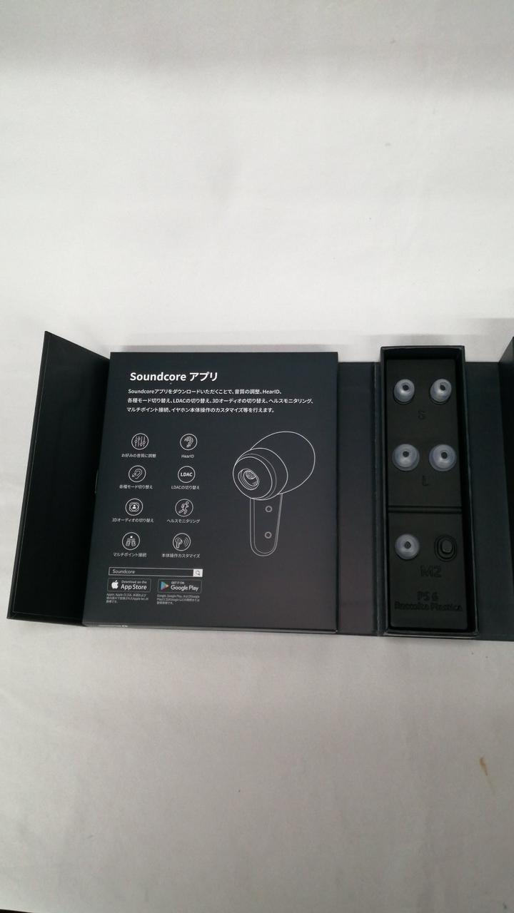 箱・説明書・充電ケーブル・イヤーチップ(M2サイズ片方ないです) |