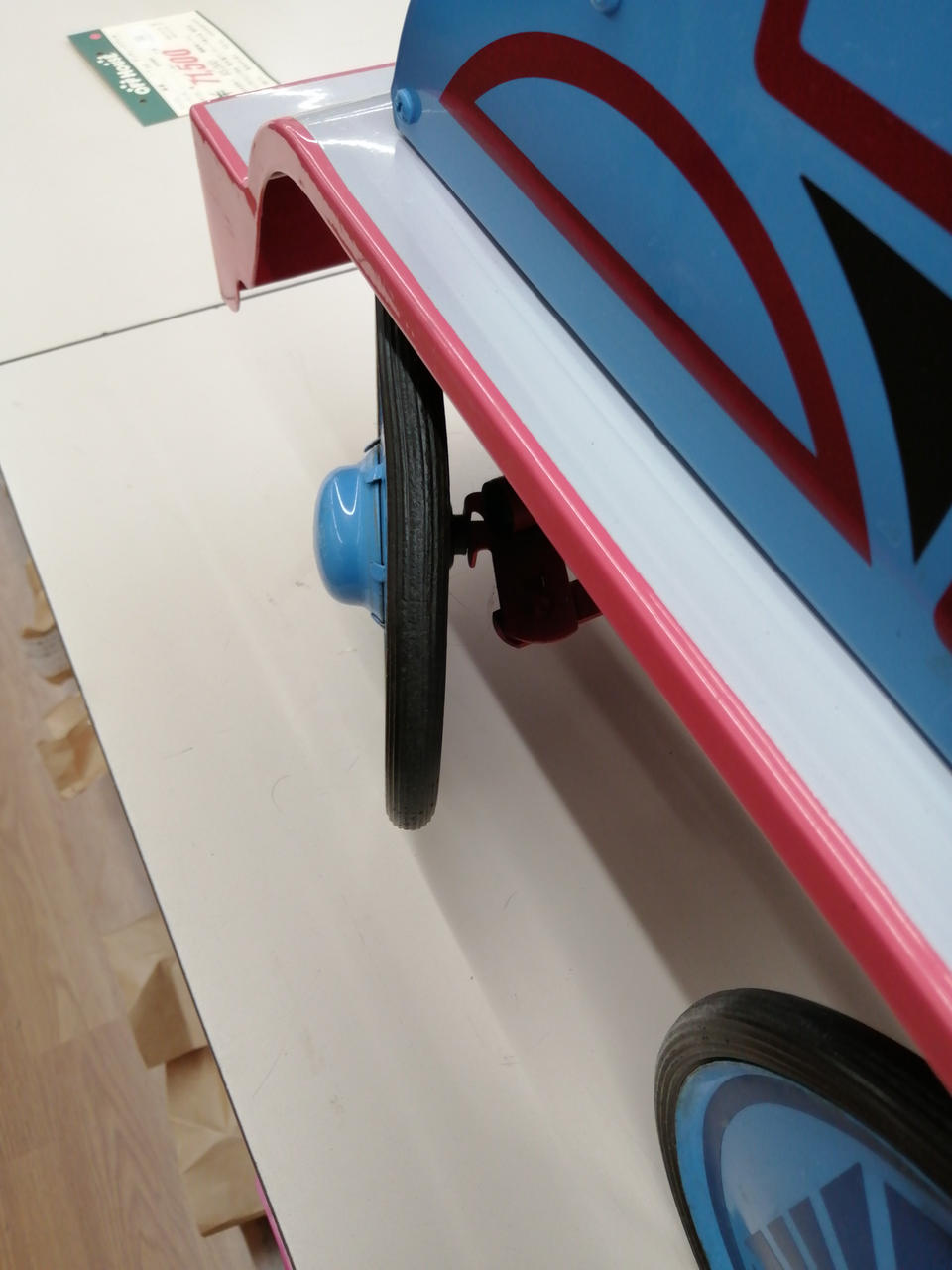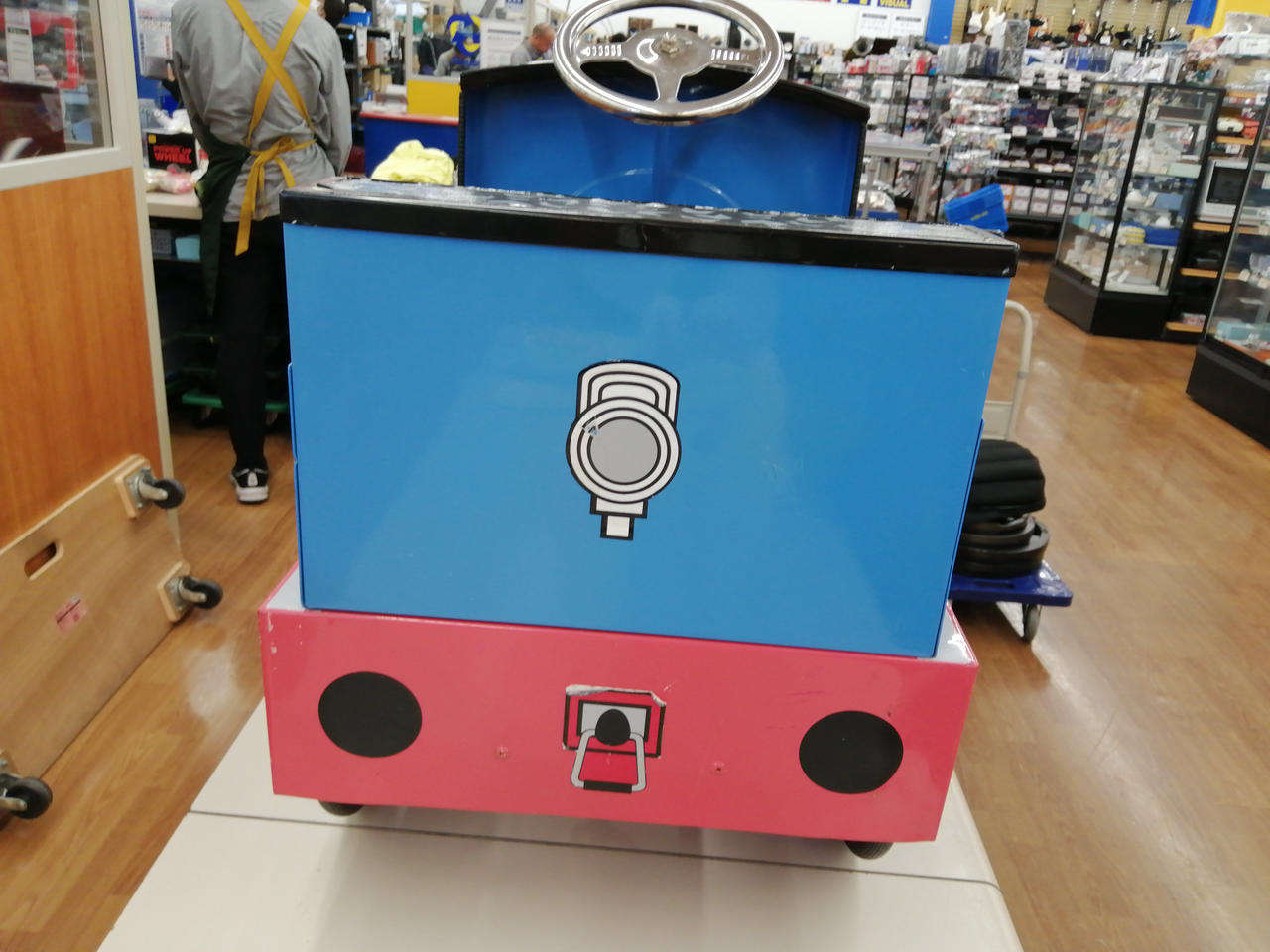 海外製スチール製品で重量があり配送が不可です。店頭展示をして期間が経ってしまい、シールがはれがれかかっています。珍しい商品ですのでインテリアと飾っていただいたりしてはいかがでしょうか?