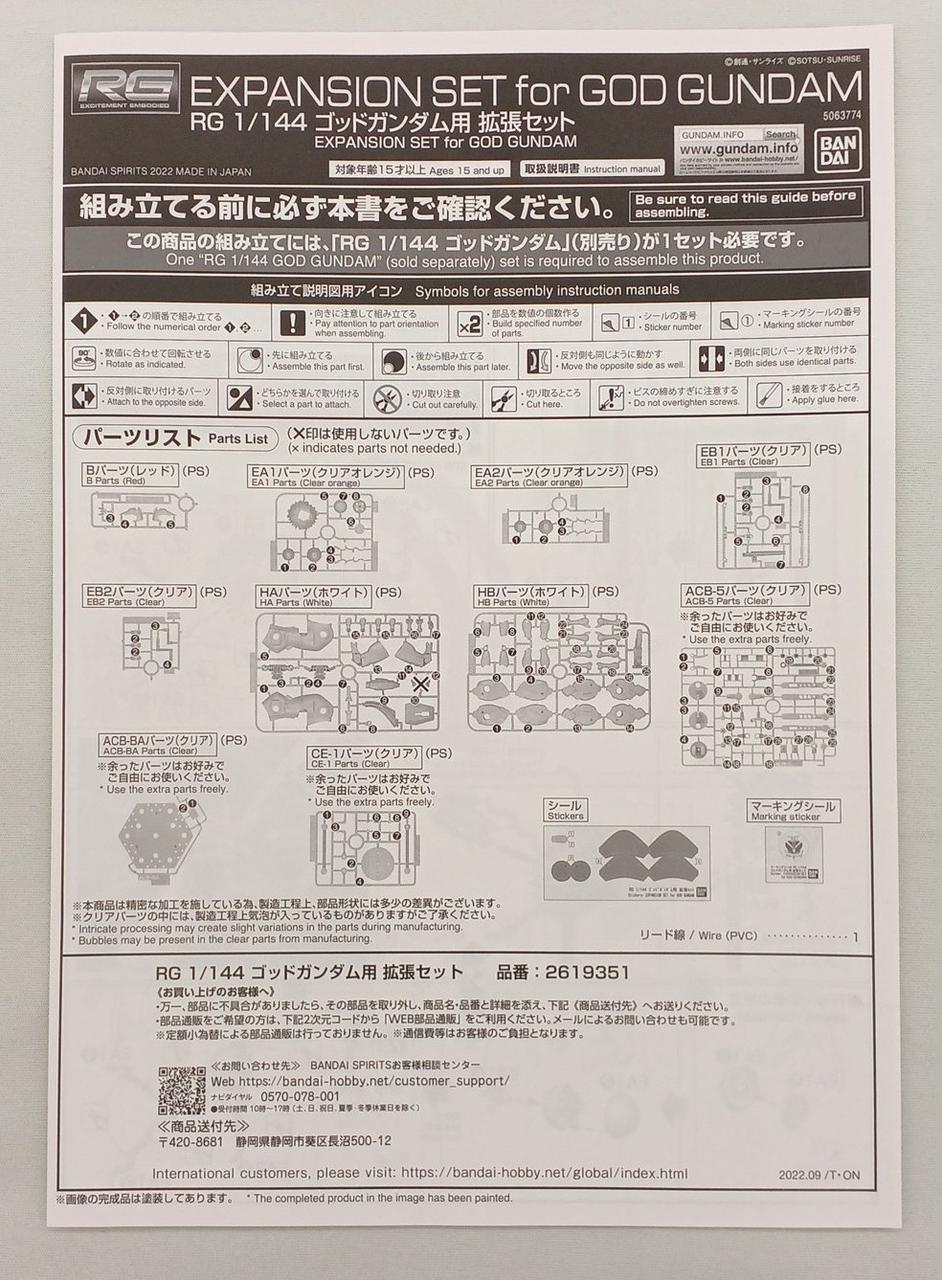 型番:RG ゴッドガンダム用 拡張セット