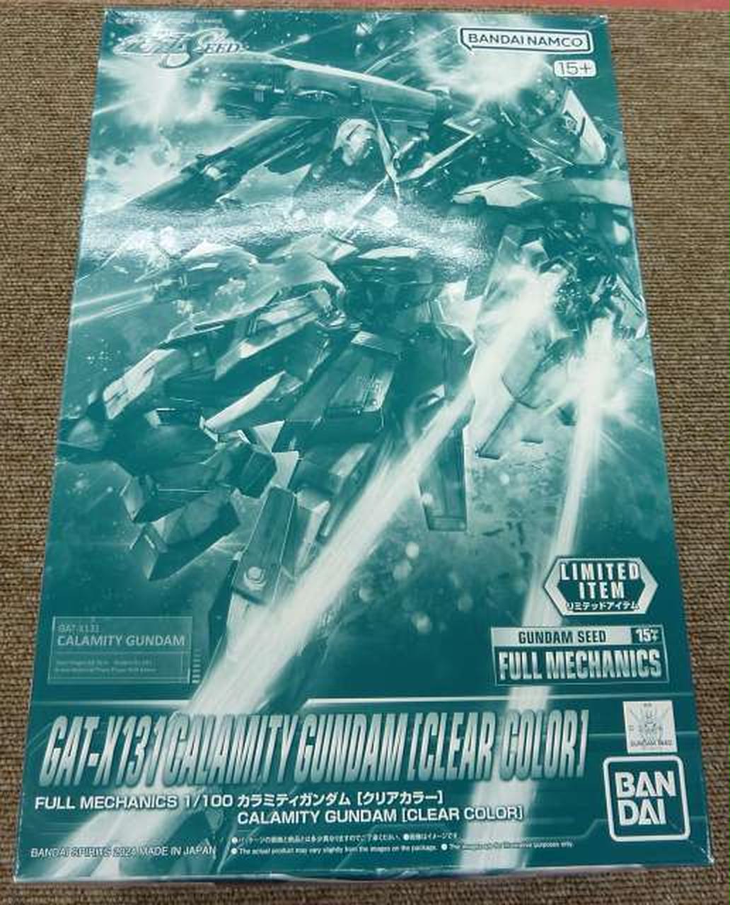 機動戦士ガンダムSEED』より、「FULL MECHANICS 1/100 カラミティガンダム」がクリアカラーになって登場!一部成形色が鮮やかなクリアカラーに変更されており、組み立てるだけでクリアブルーにクリアオレンジが映える美しい仕上がりに。頭部は胴体から引き出し、襟との緩衝を緩和するギミックを内蔵。腹部の可動軸は前後・左右にスイングするギミックを搭載。股間軸も下方向へスイングし、スタンスの広い迫力あるポーズを演出できる。前屈した際に、胴体の左右方向の回転を妨げないようフロントスカートが手前に傾く連動可動を搭載。フロントブロックは胴体が反る際には、引き上げる動きでブロックの隙間を隠す構造となっている。腕は肩アーマーとボールジョイントで接続。肩スイング、肘二重関節、手首二重関節の組み合わせで可動。手持ち武器として「トーデスブロック」が付属。グリップが手前にスイングする可動ギミックを搭載。砲身がスイング可動する「ケーファー・ツヴァイ」(シールド)が付属。ジョイントパーツを使用して前腕に取り付けが可能。 |