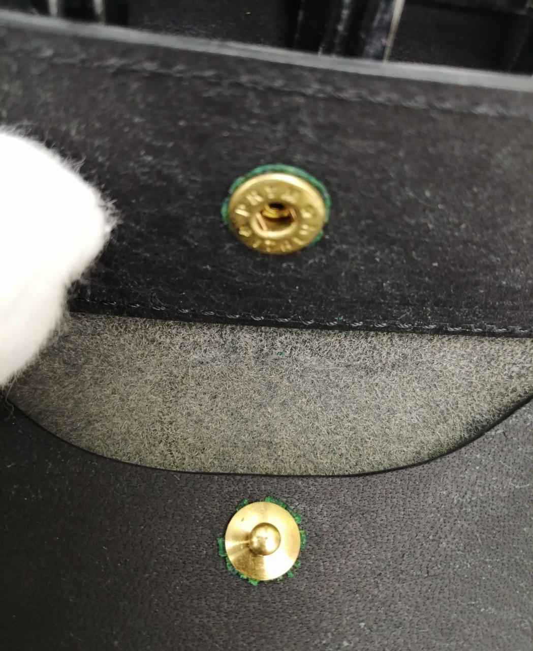 それぞれのボタン付け根に緑色のサビがあります。