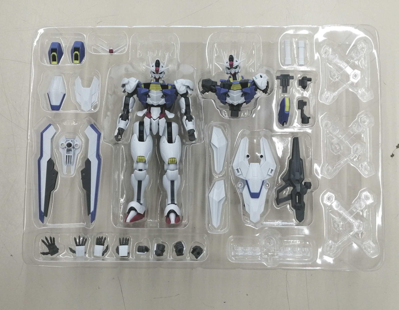 第9話のグラスレー寮との決闘でダメージを受けたエアリアルを再現する交換パーツも付属している限定物になります |