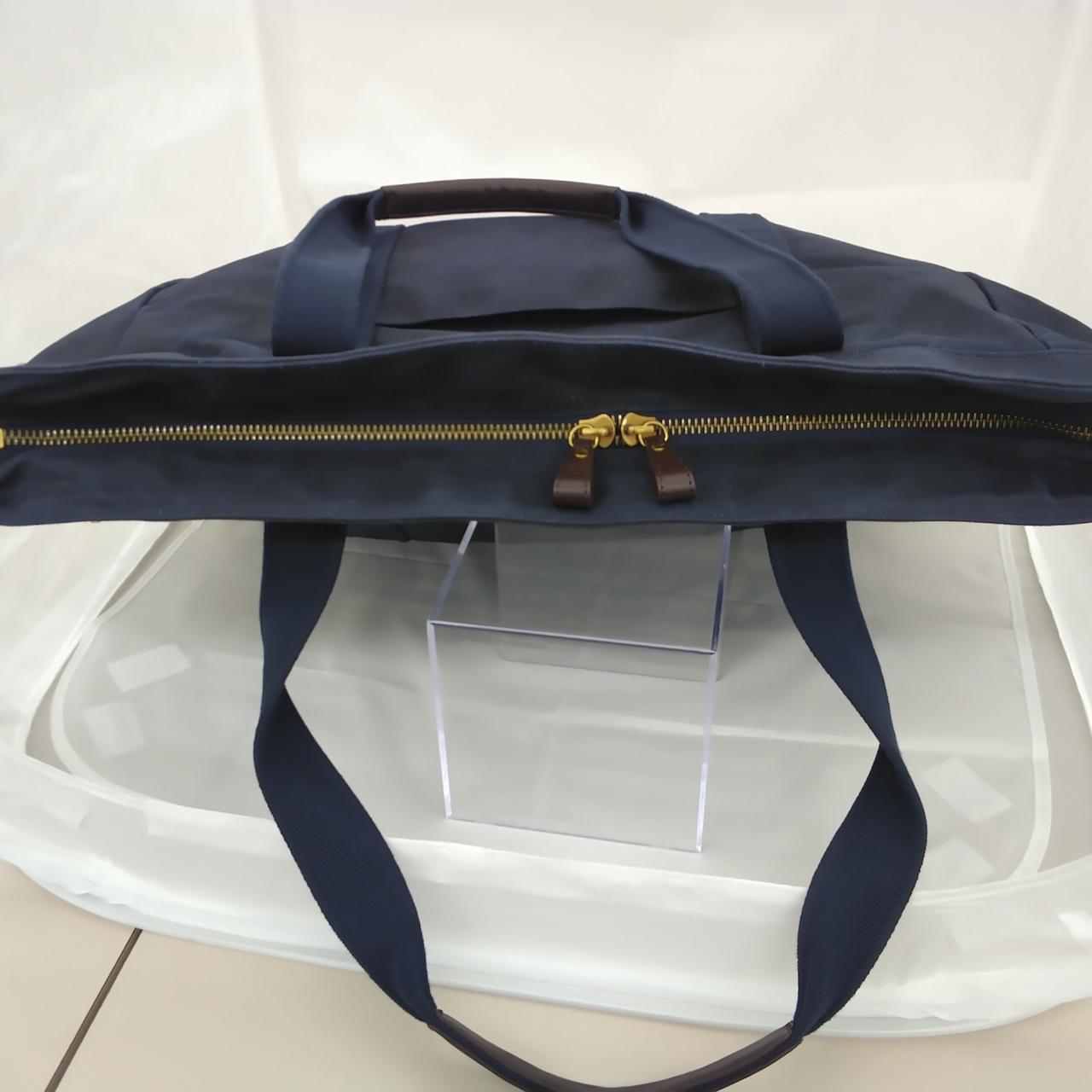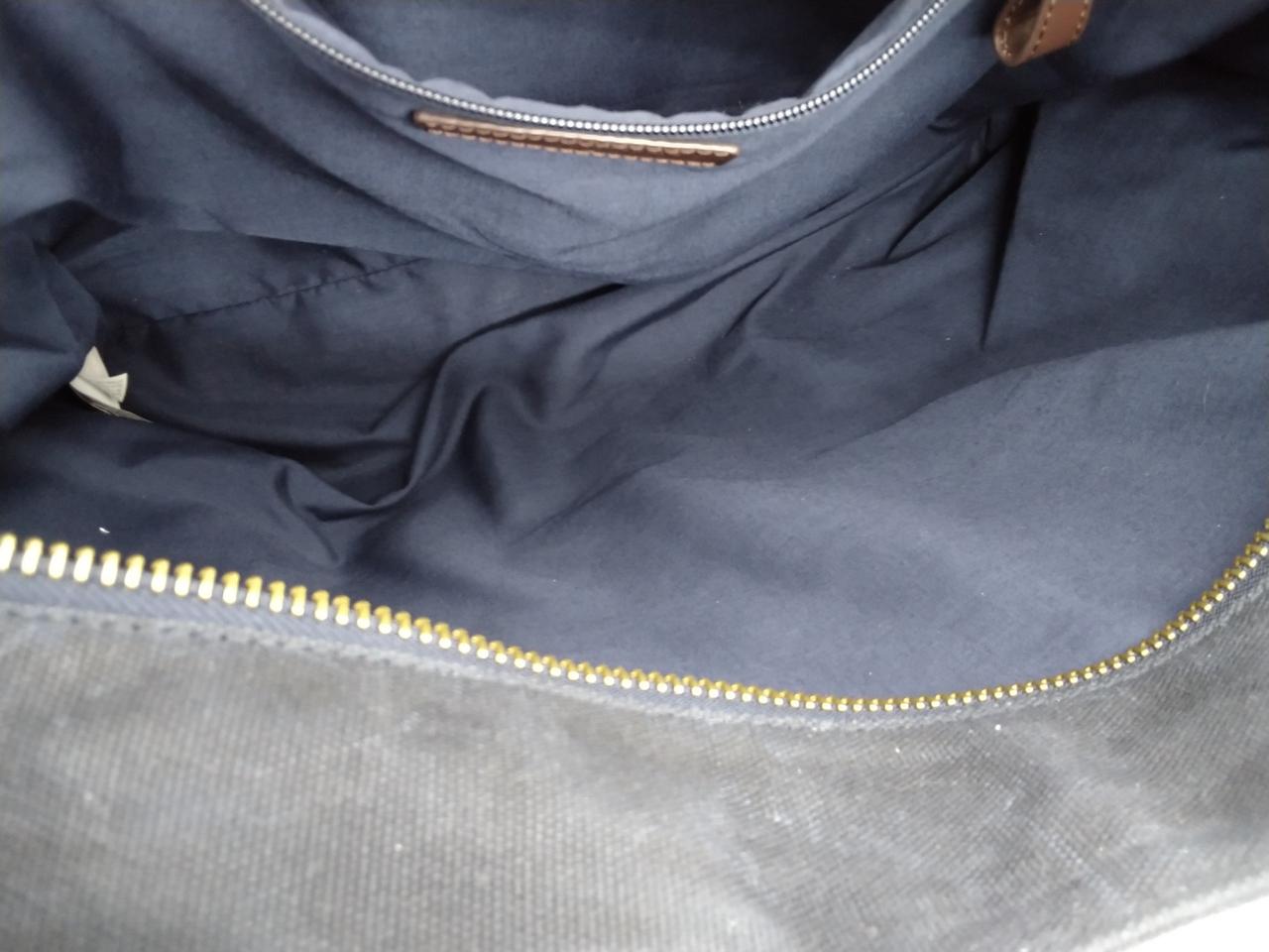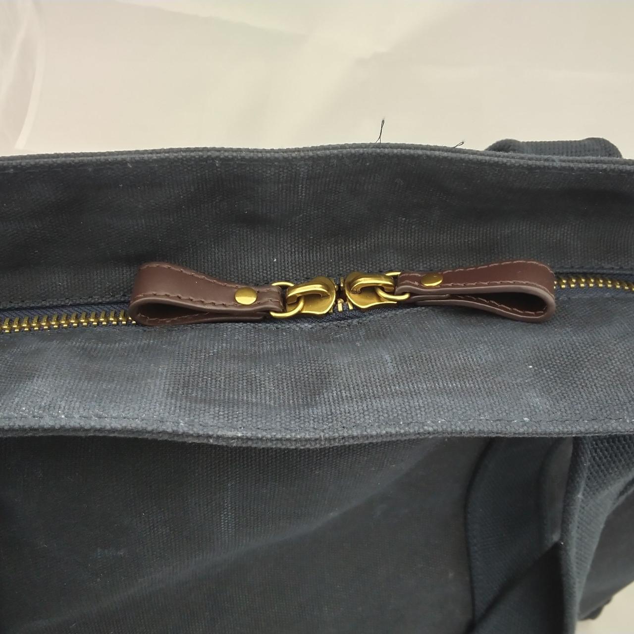 レザーで補強されたコットンツイルのストラップやレザートリムのジッパープル、ハンサムなディテールが施されたバッグ