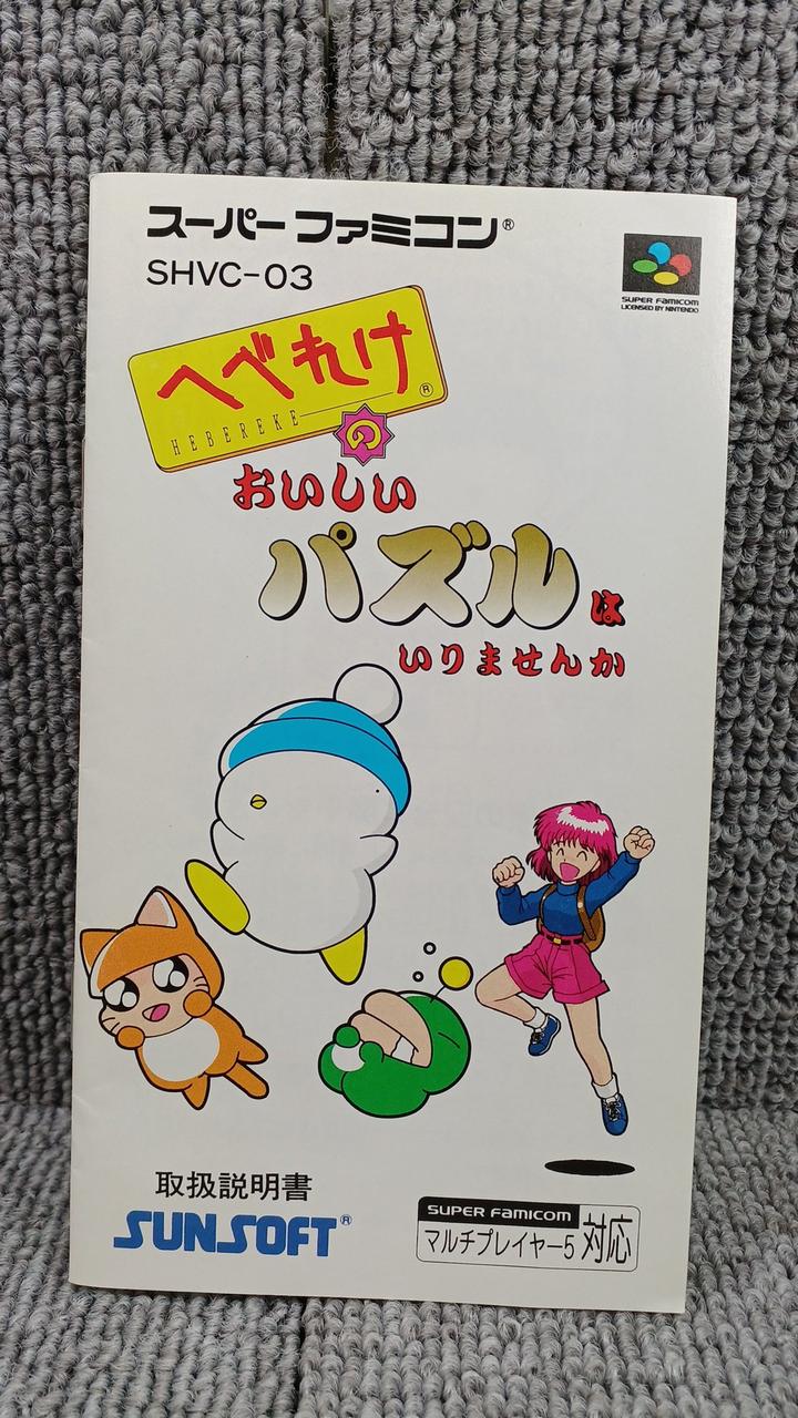 スーパーファミコン用ソフト へべれけのおいしいパズルはいりませんか |