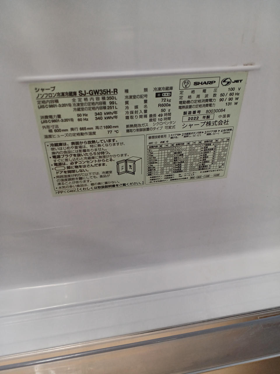 自動製氷付き350リットル3ドア冷蔵庫