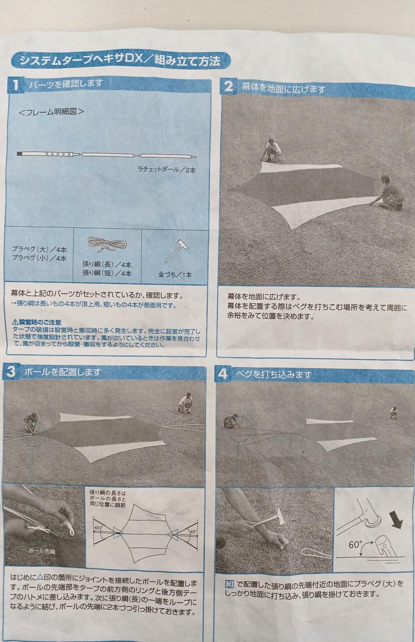 ペグ大小各4本欠品金づち1本欠品幕体ベージュ部分全体に汚れあり