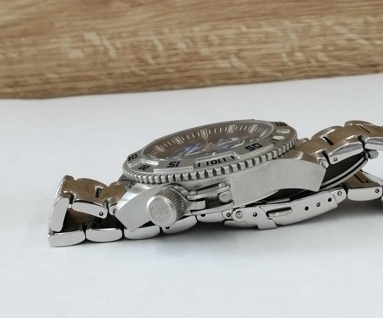 直径45mmのビッグフェイスは30°傾斜させて視認性を高めたユニークな設計です!